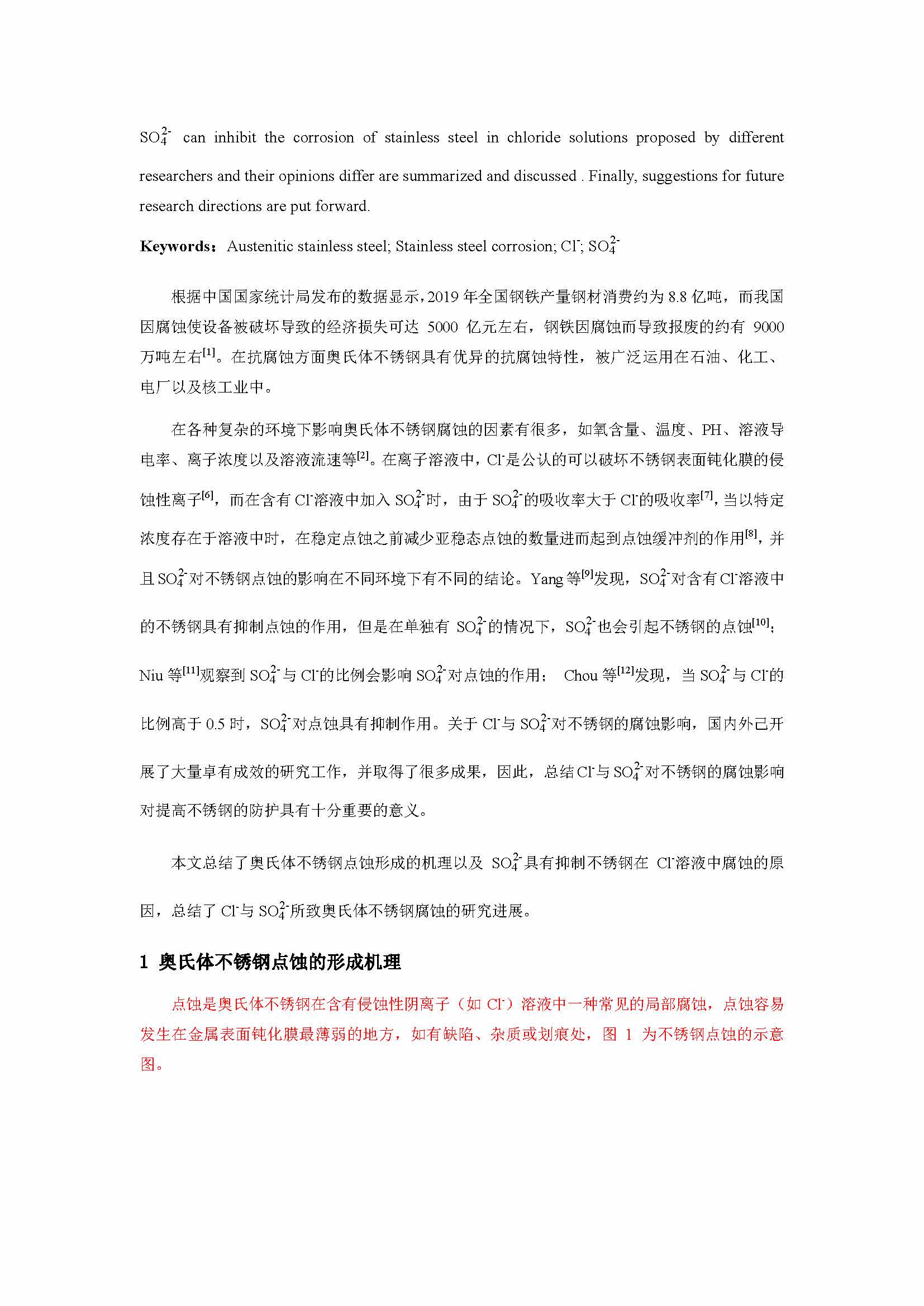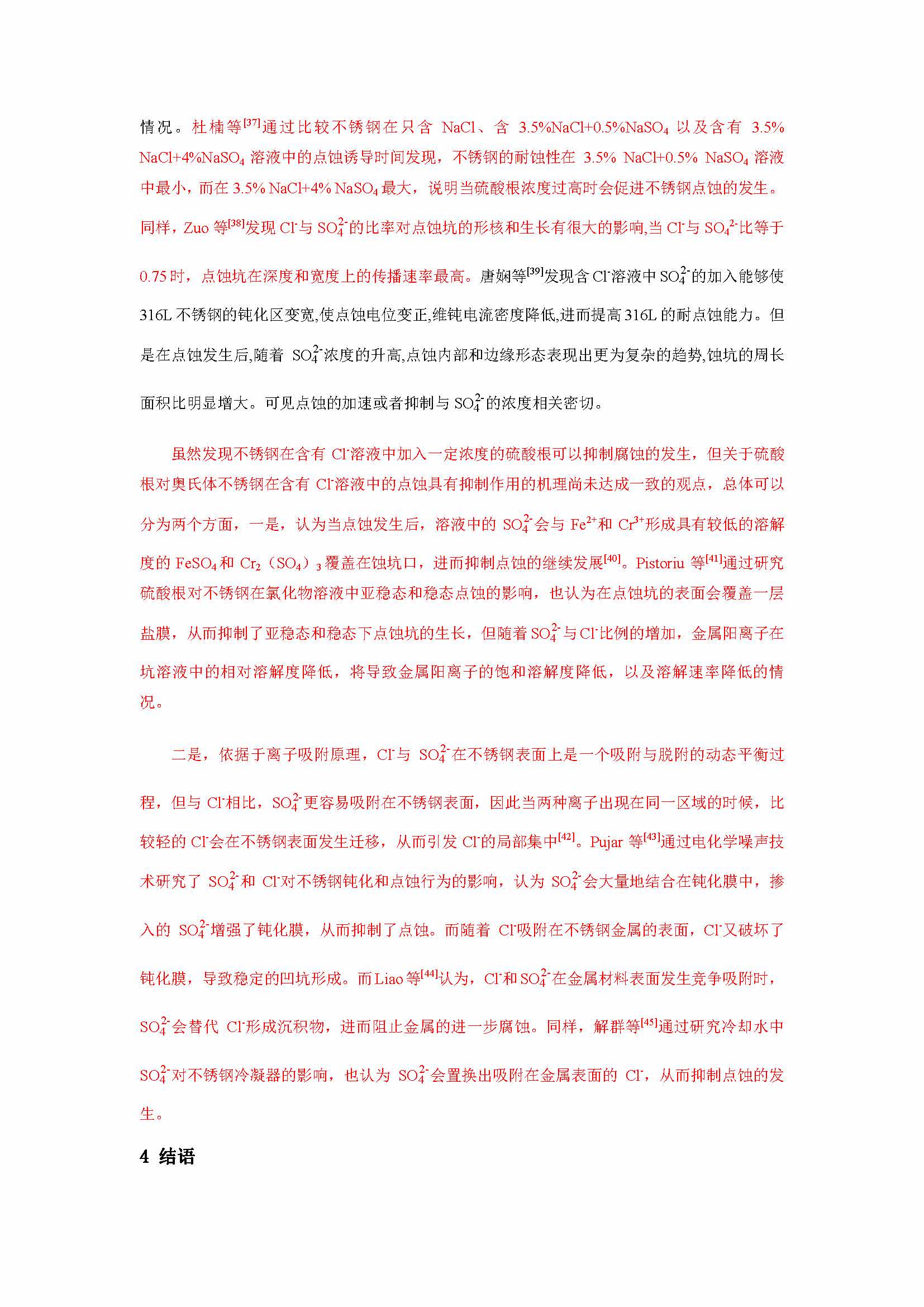硫酸根对不锈钢在含氯离子溶液中的腐蚀影响研究进展