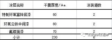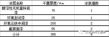 沪苏通长江公铁大桥(工程名:沪通长江大桥)构建外表面采用了环氧富锌配套涂层的方案,其配套体系如表5所示。