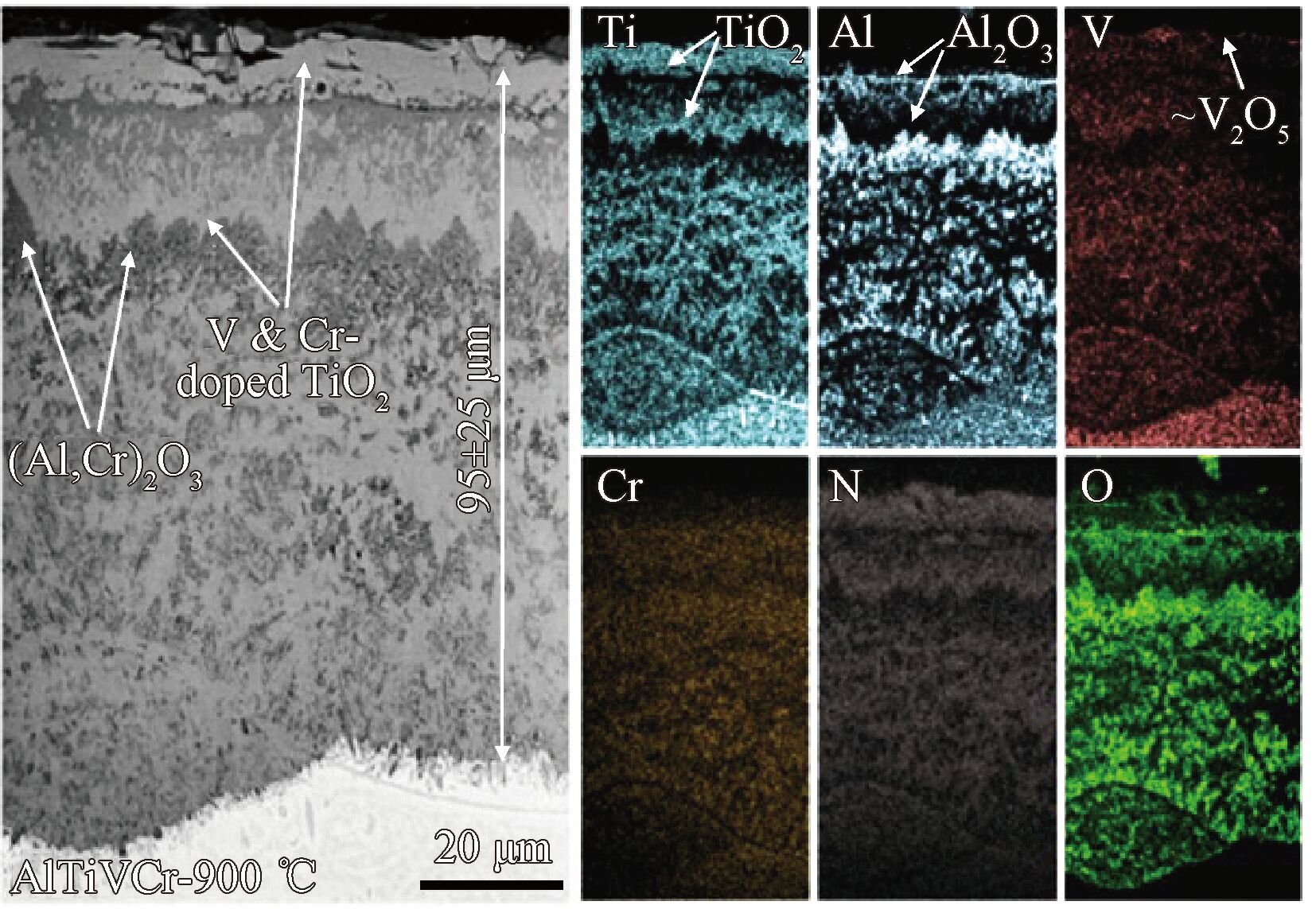 图7 AlTiVCr 900℃氧化后的SEM和EDS图[55]