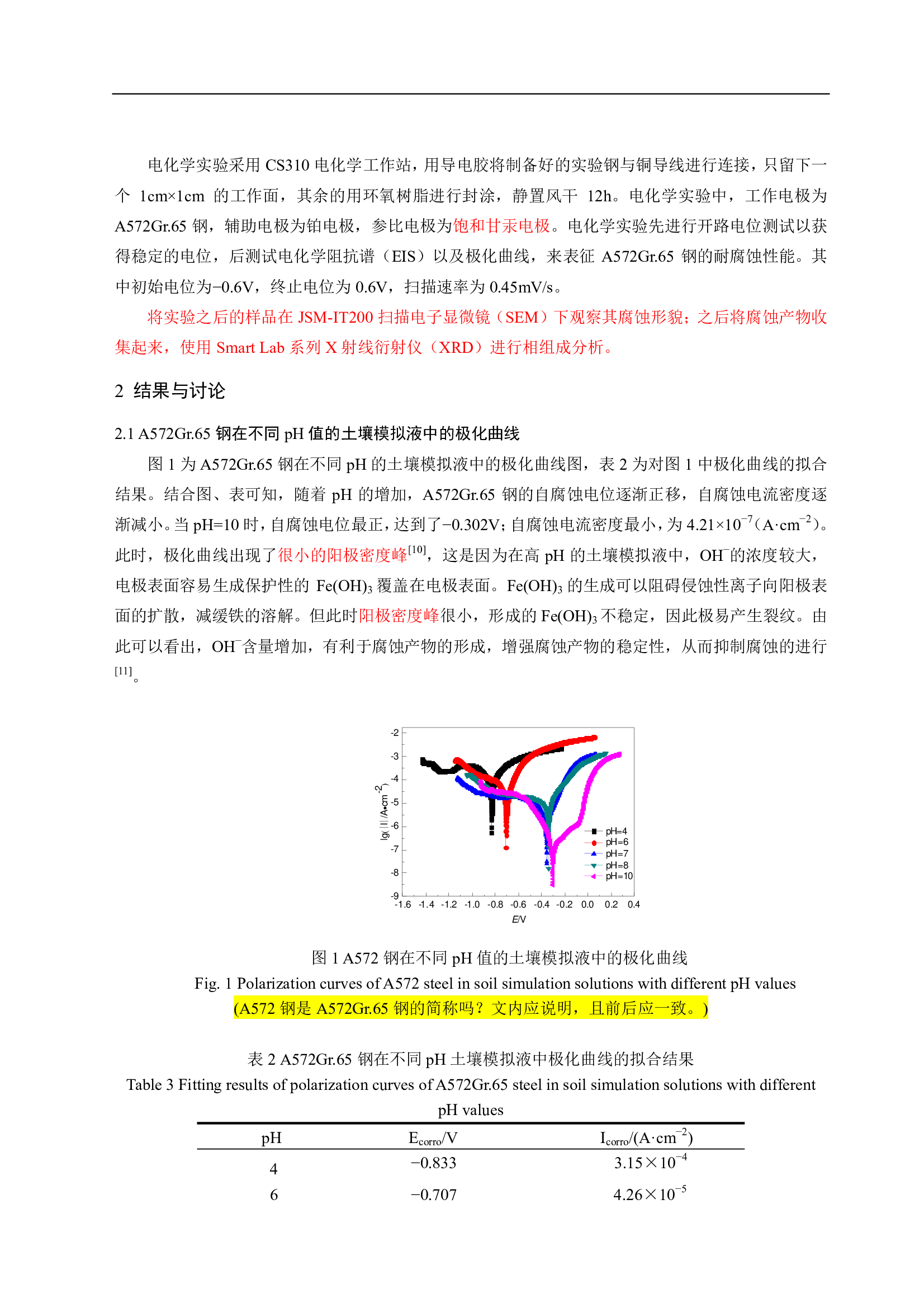 标签: A572Gr.65 钢, 极化曲线, 阻抗谱, pH 值, 腐蚀动力学