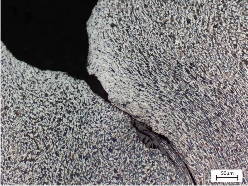 图8 新螺栓横截面试样的折叠缺陷(侵蚀态)