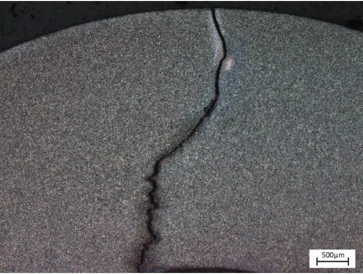 图7 新螺栓横截面试样的折叠缺陷(抛光态)