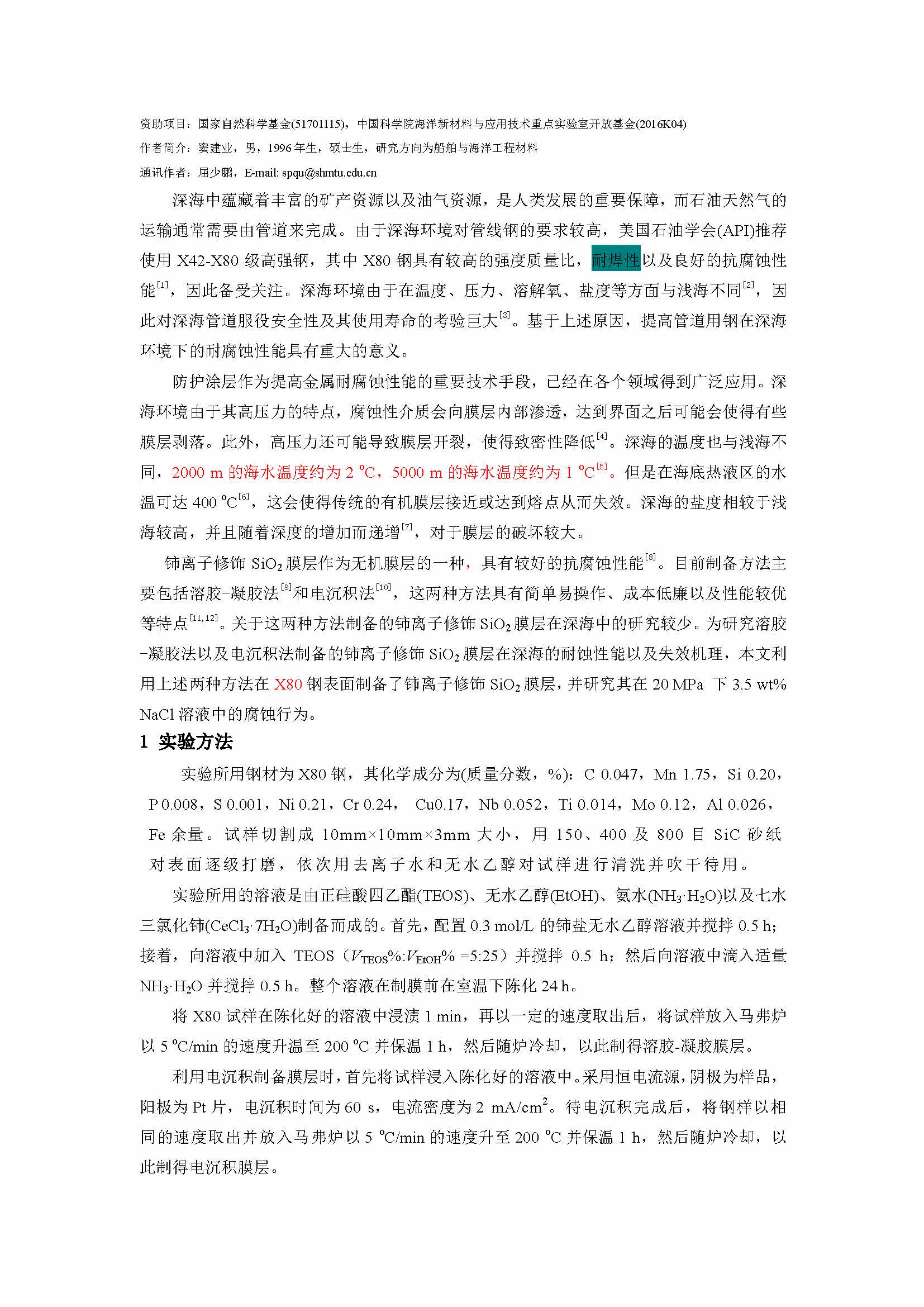 不同方法制备铈离子修饰SiO2膜层在深海中的服役行为