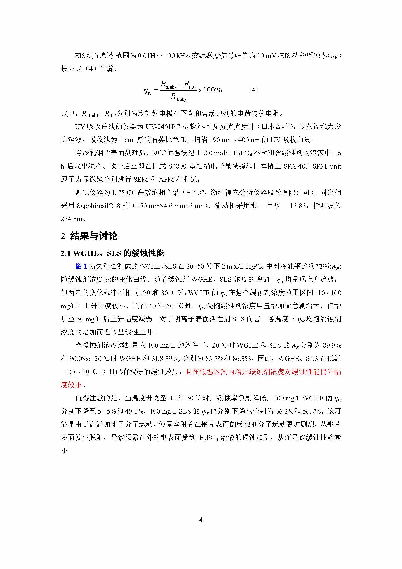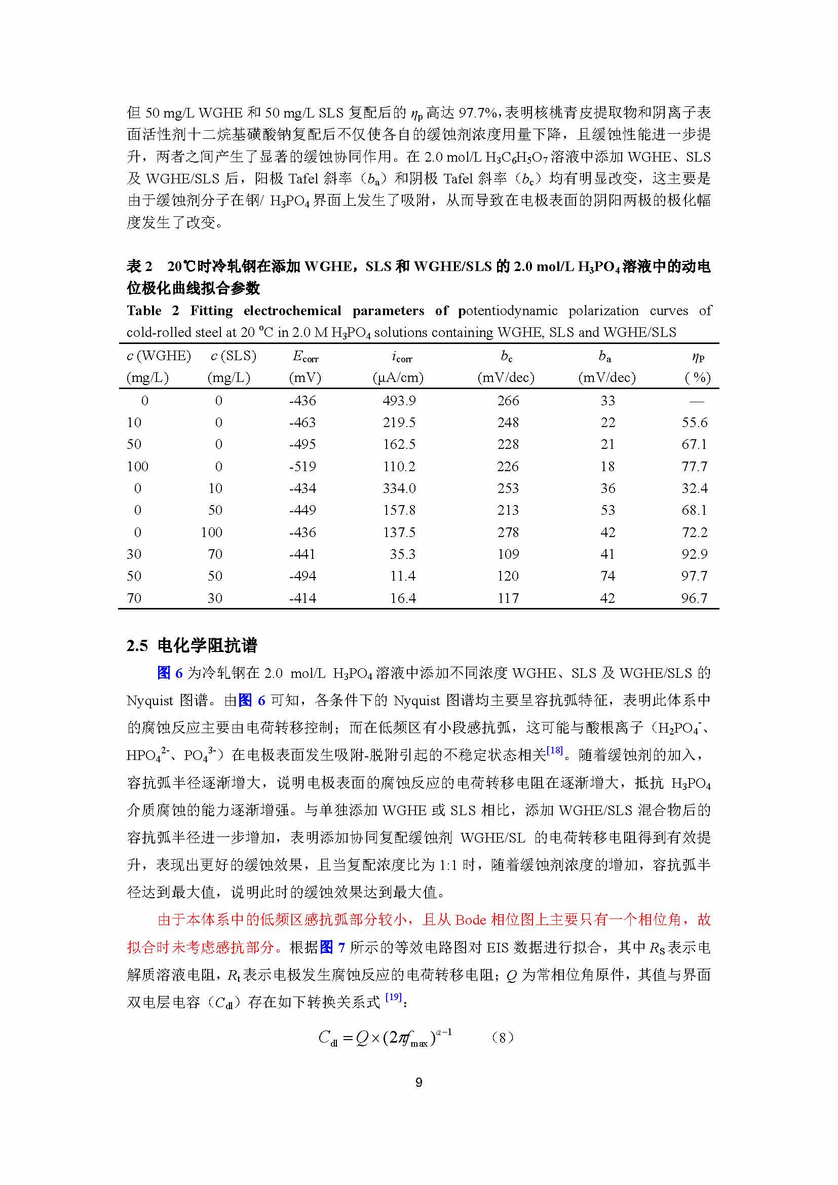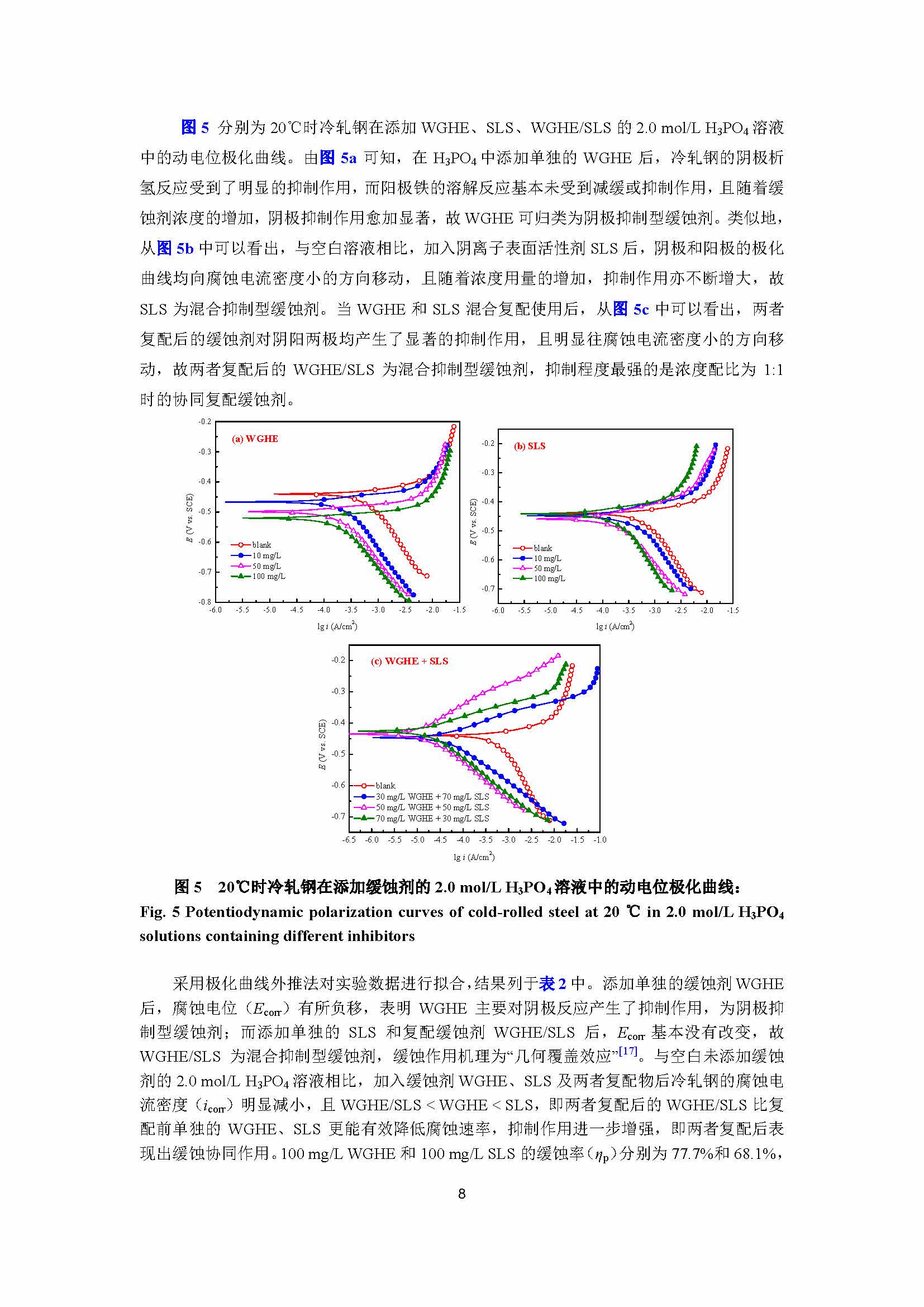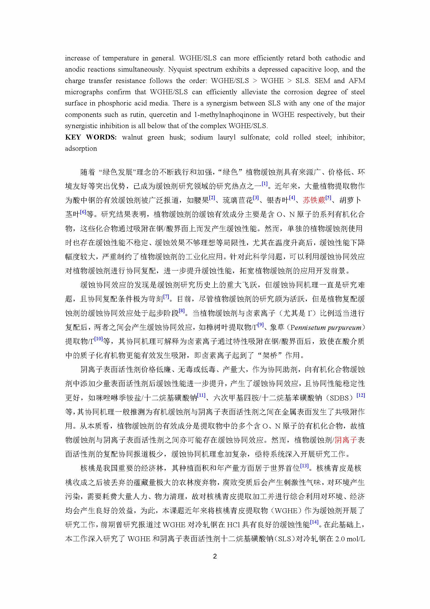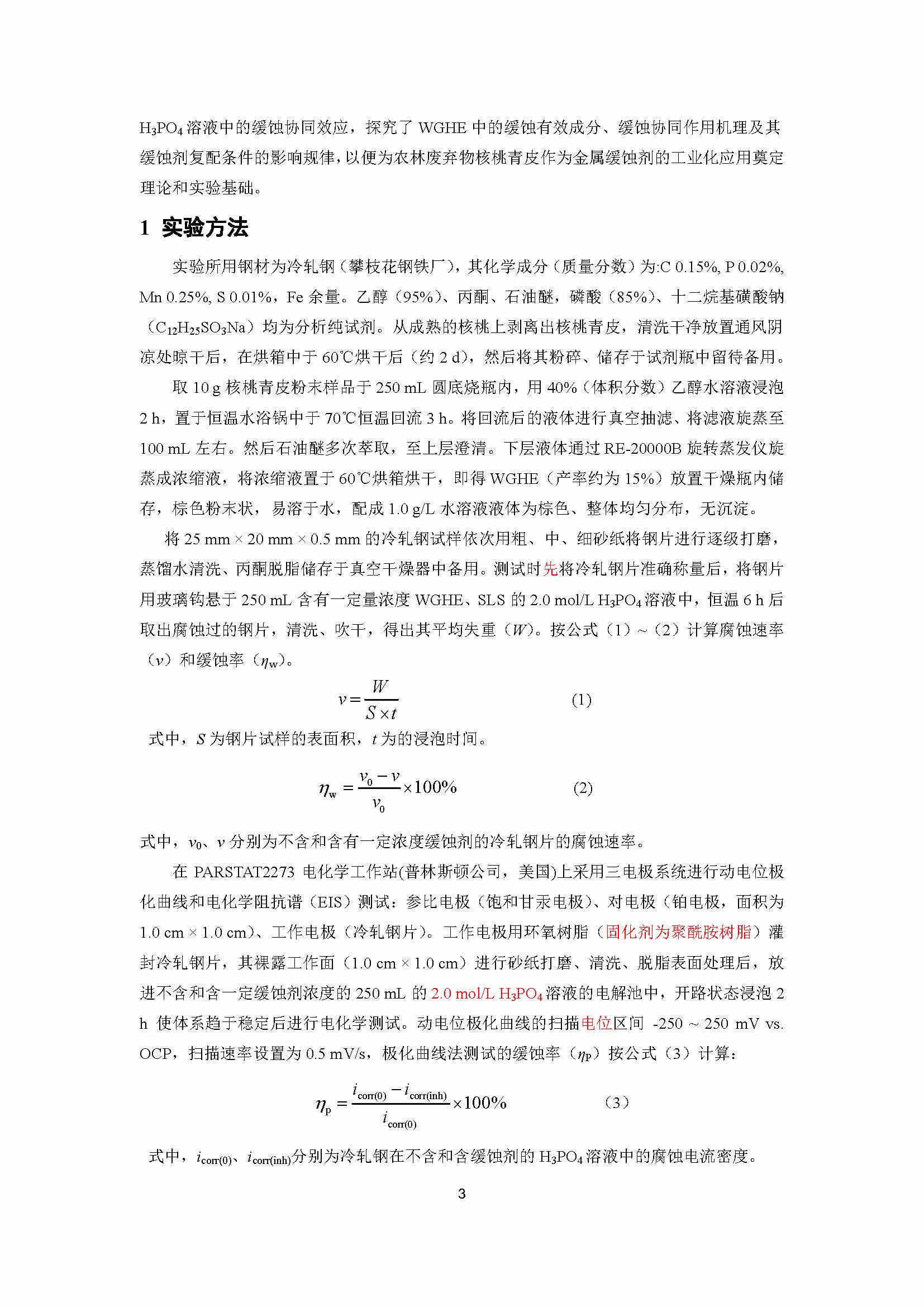 磷酸中核桃青皮复配缓蚀剂对冷轧钢的缓蚀协同效应