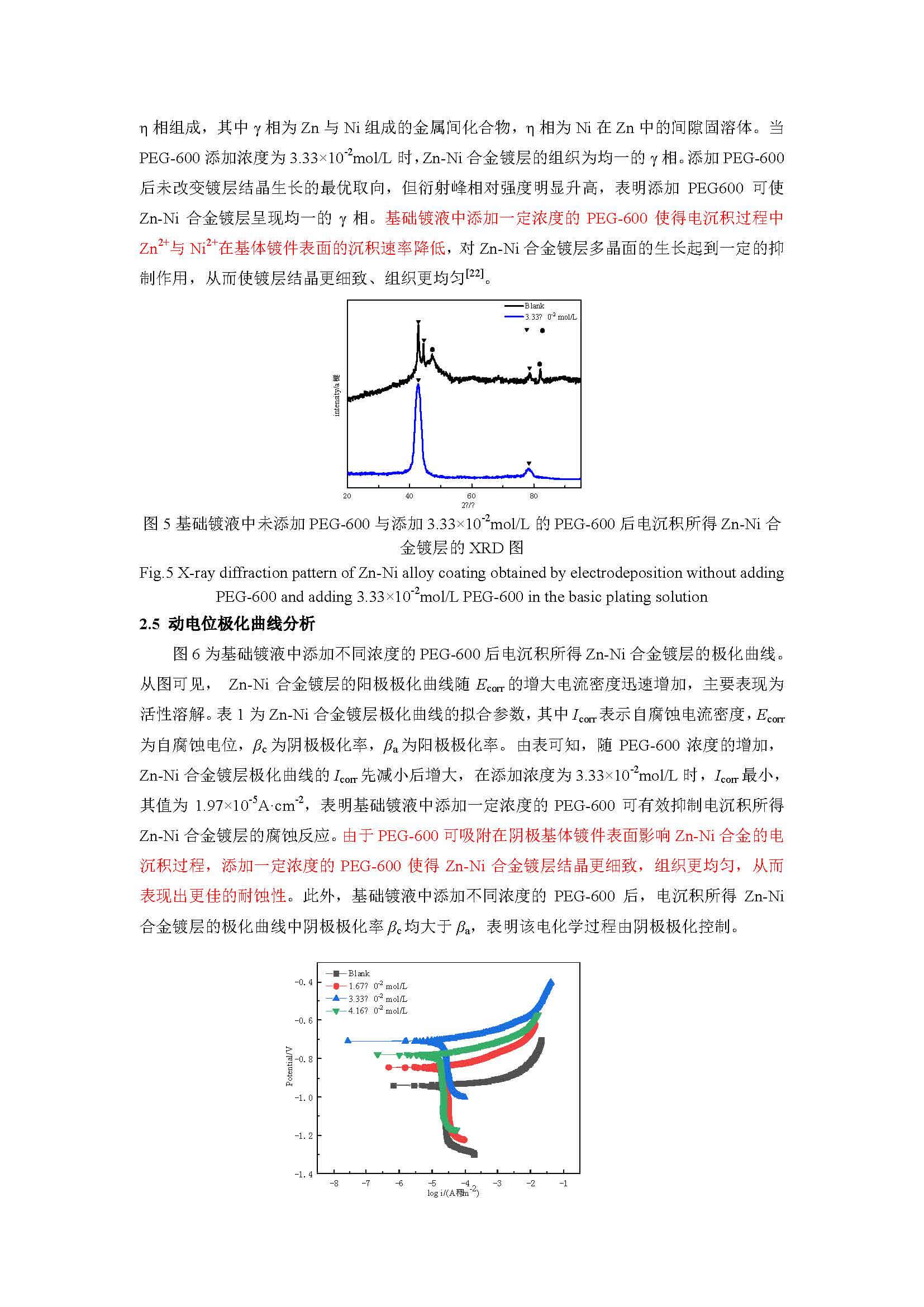 聚乙二醇-600对酸性Zn-Ni合金的电沉积行为及镀层耐蚀性影响的研究