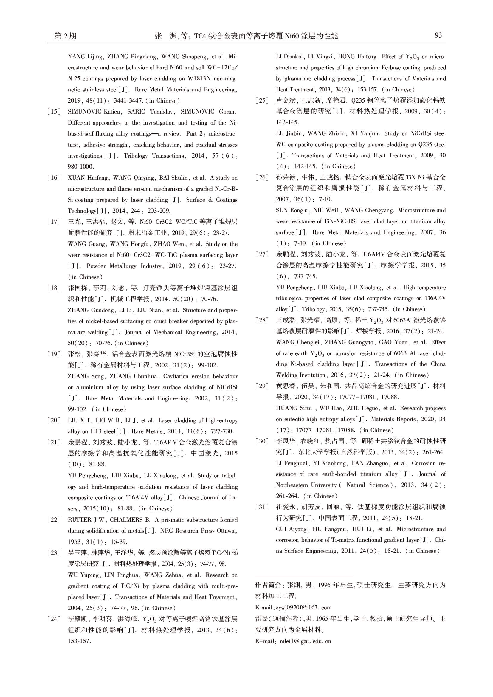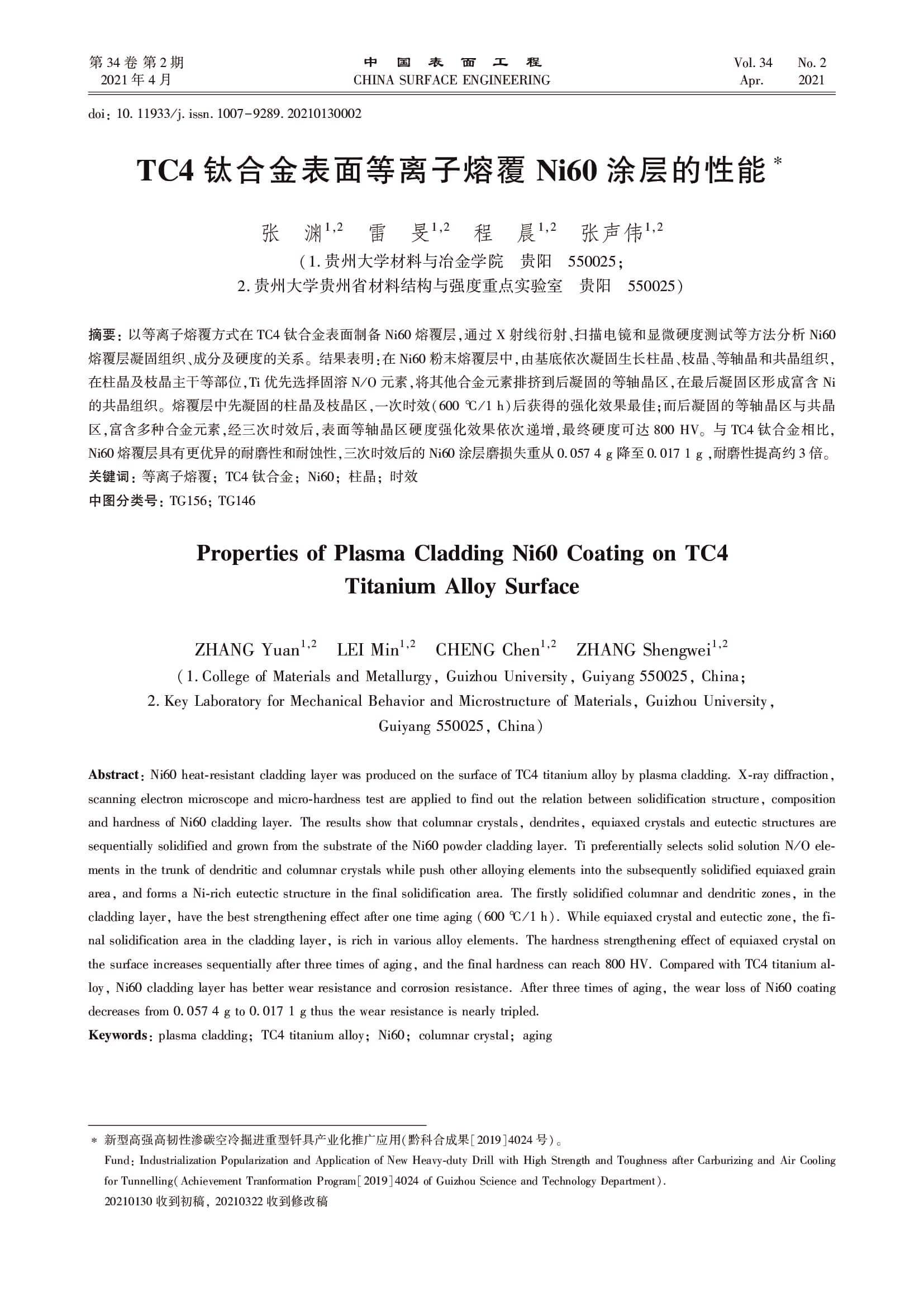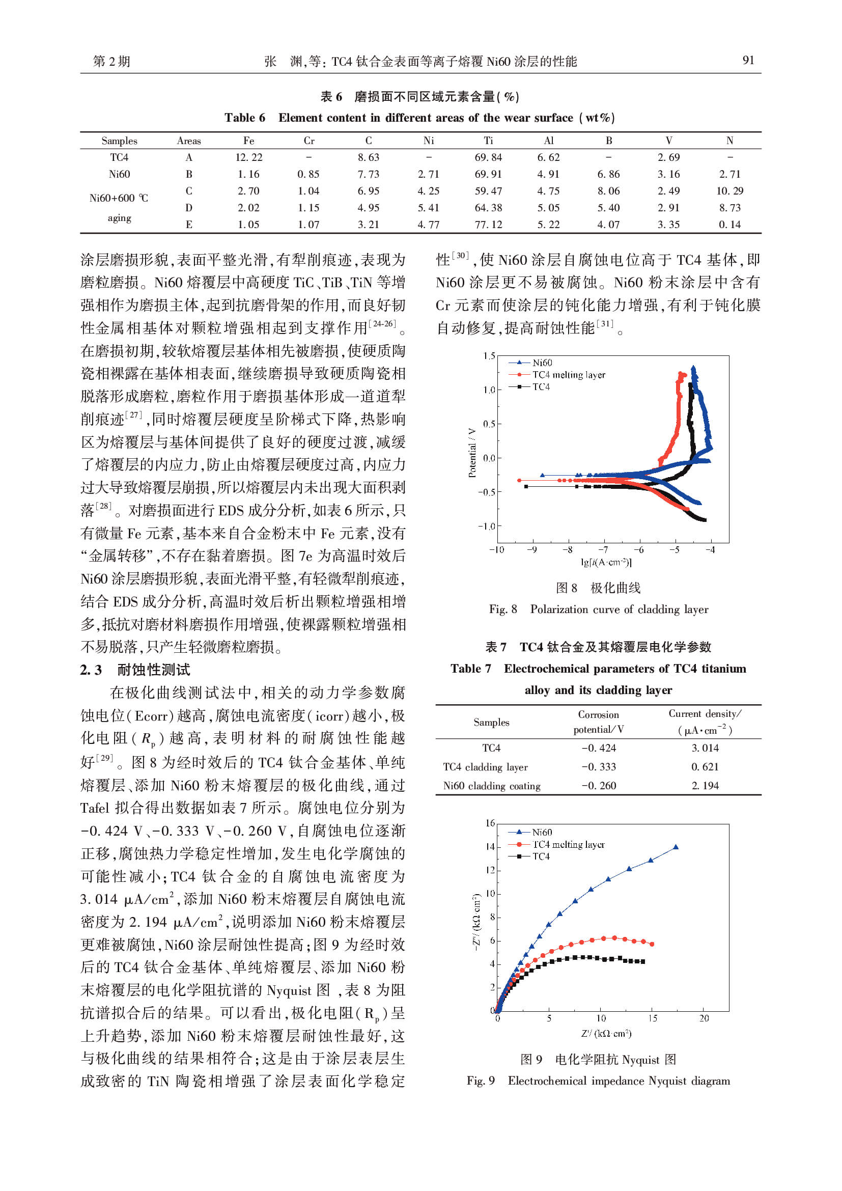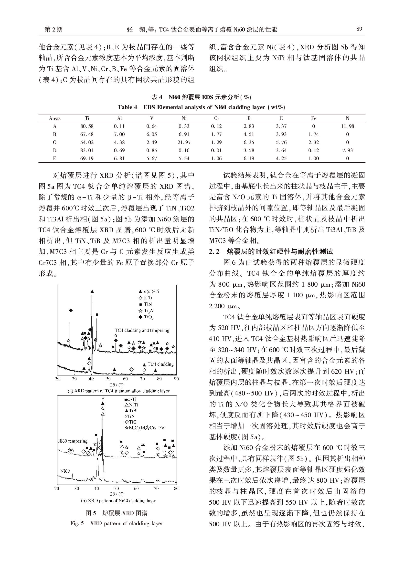 TC4钛合金表面等离子熔覆Ni60涂层的性能