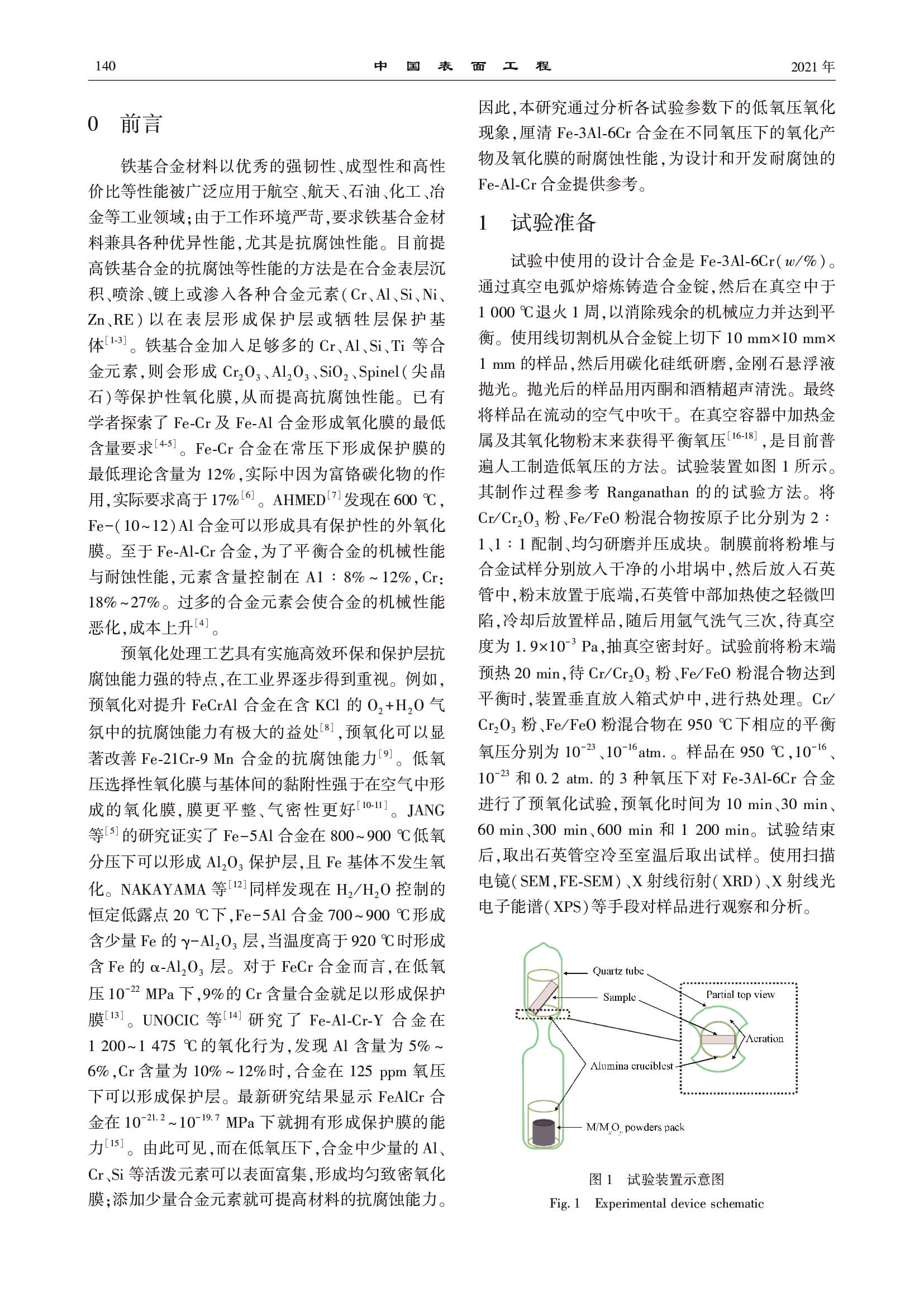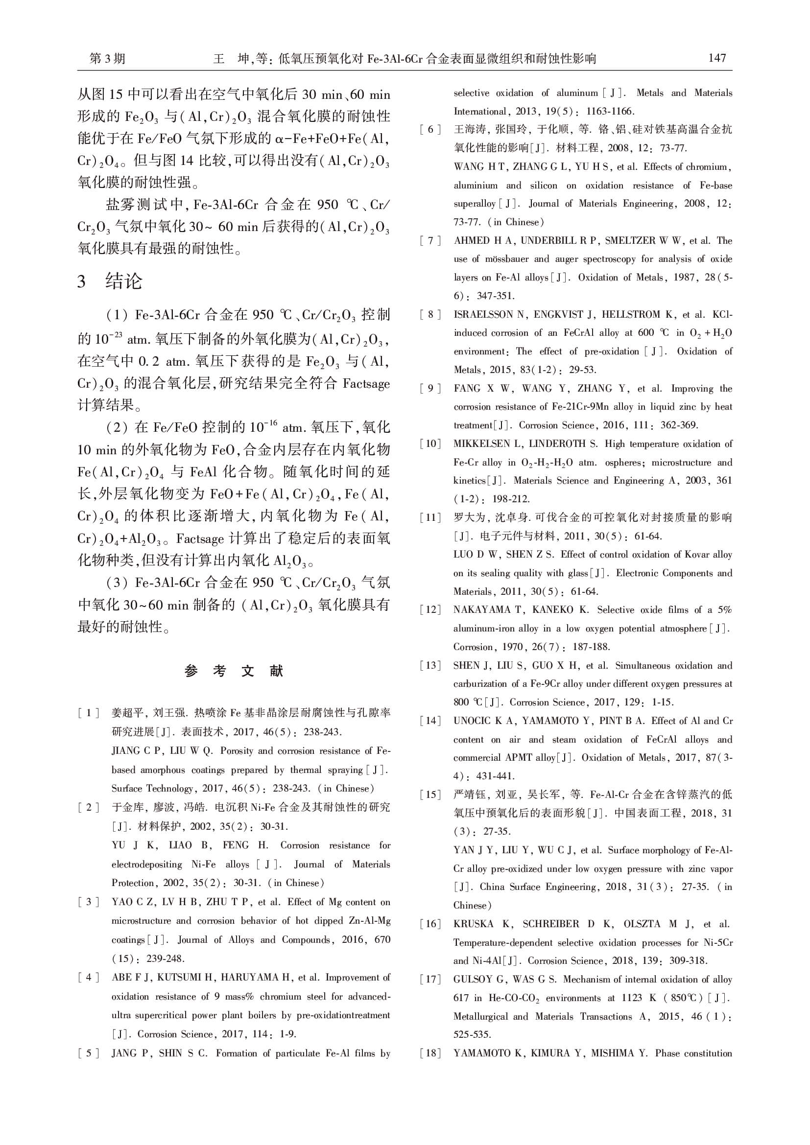 标签: 预氧化, Fe-3Al-6Cr, 氧化薄膜, 盐雾腐蚀