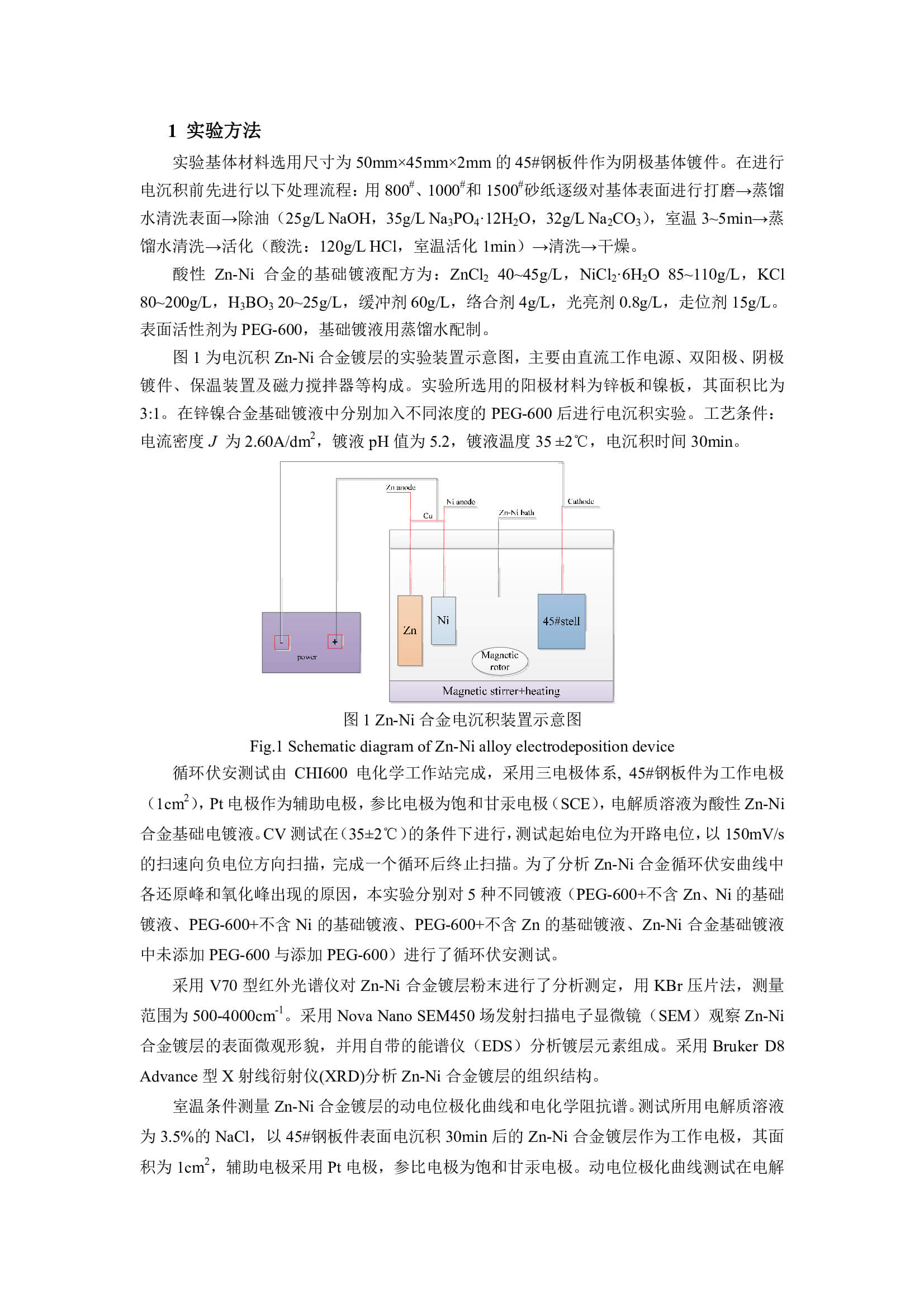 标签: 聚乙二醇-600, 酸性 Zn-Ni 镀液, 电沉积, 耐蚀性