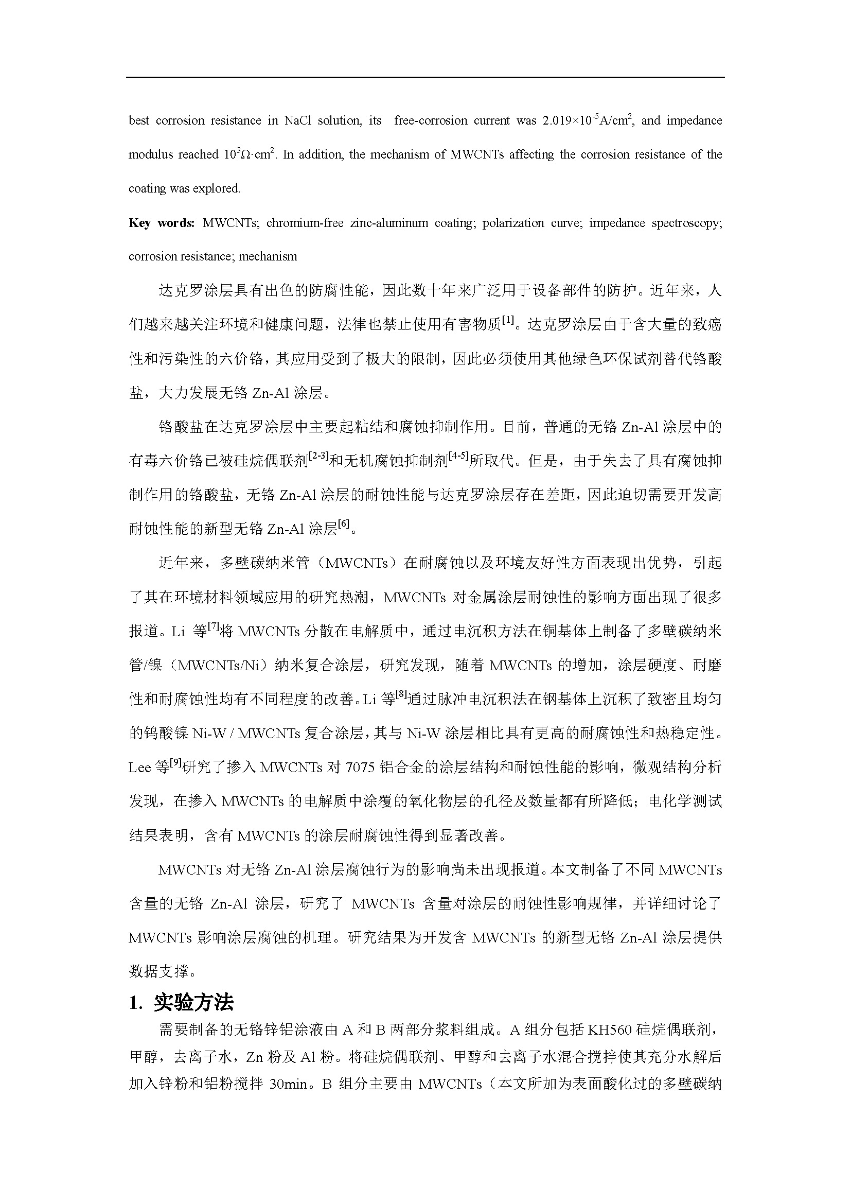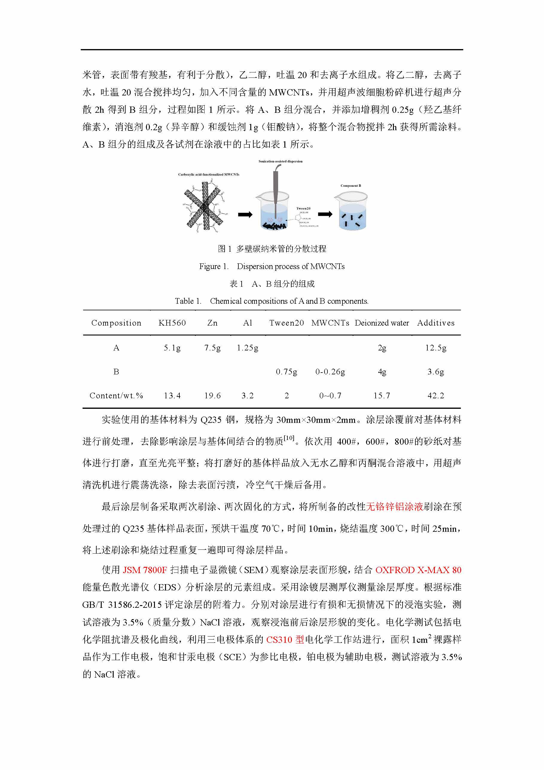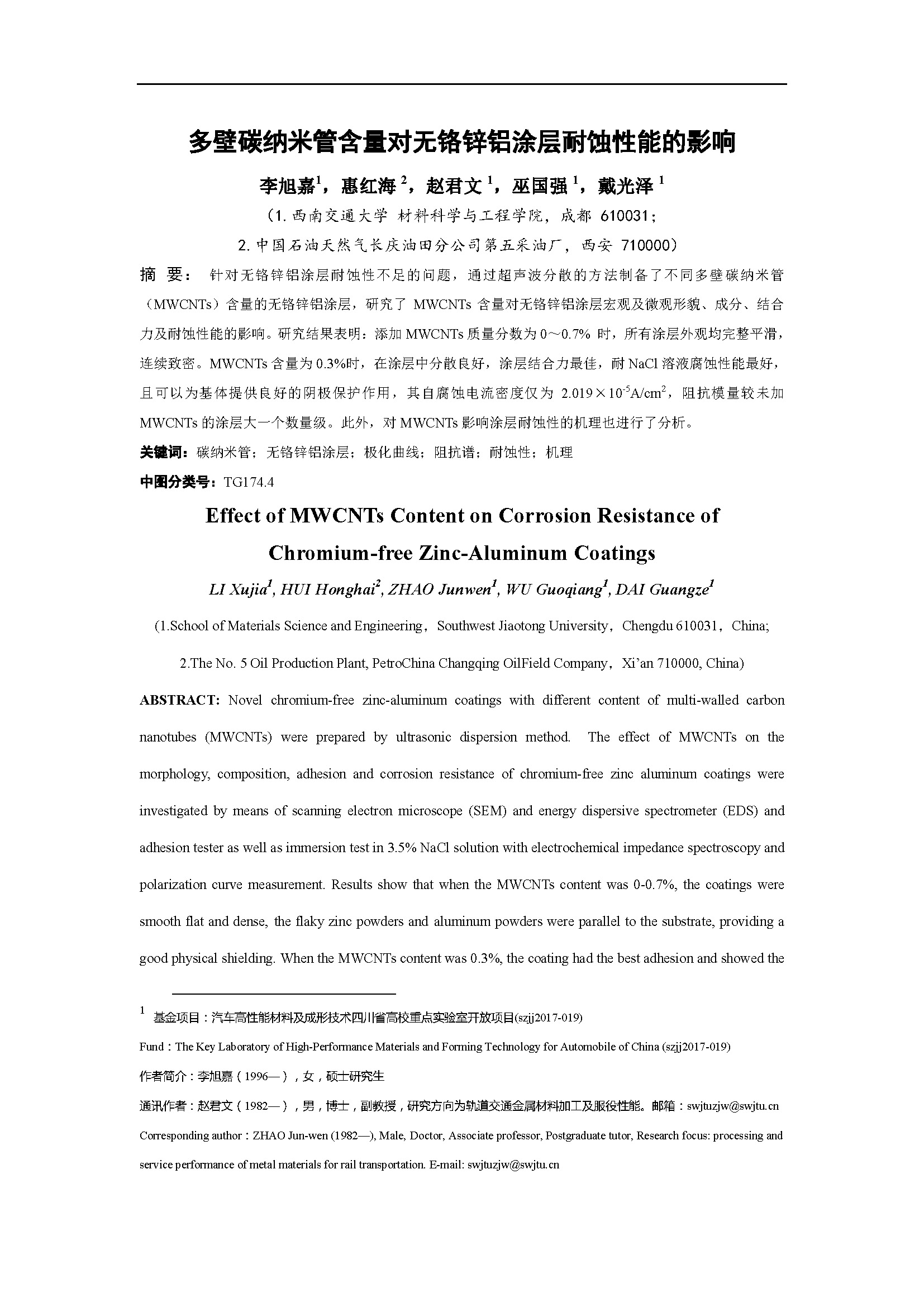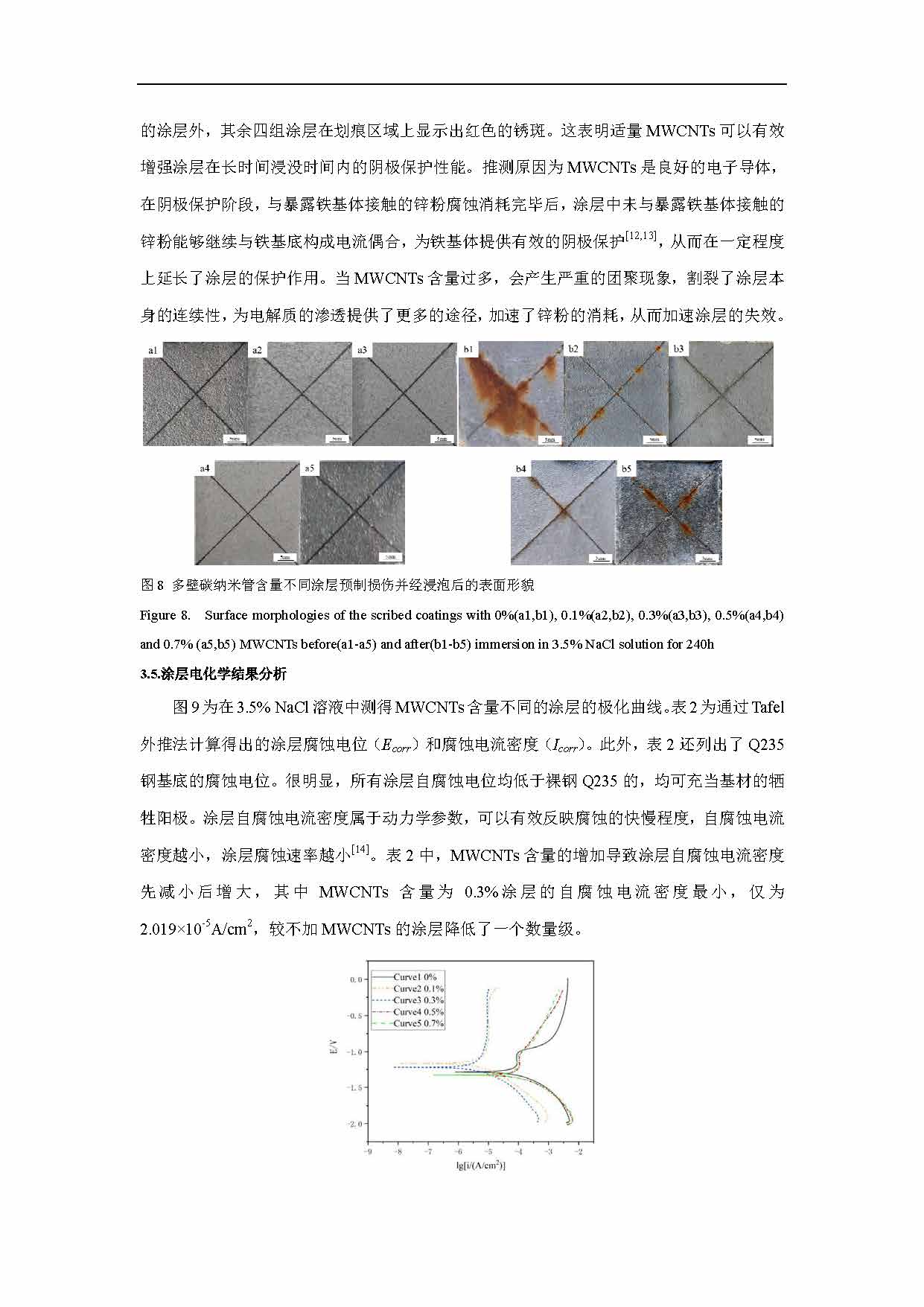 多壁碳纳米管含量对无铬锌铝涂层耐蚀性能的影响