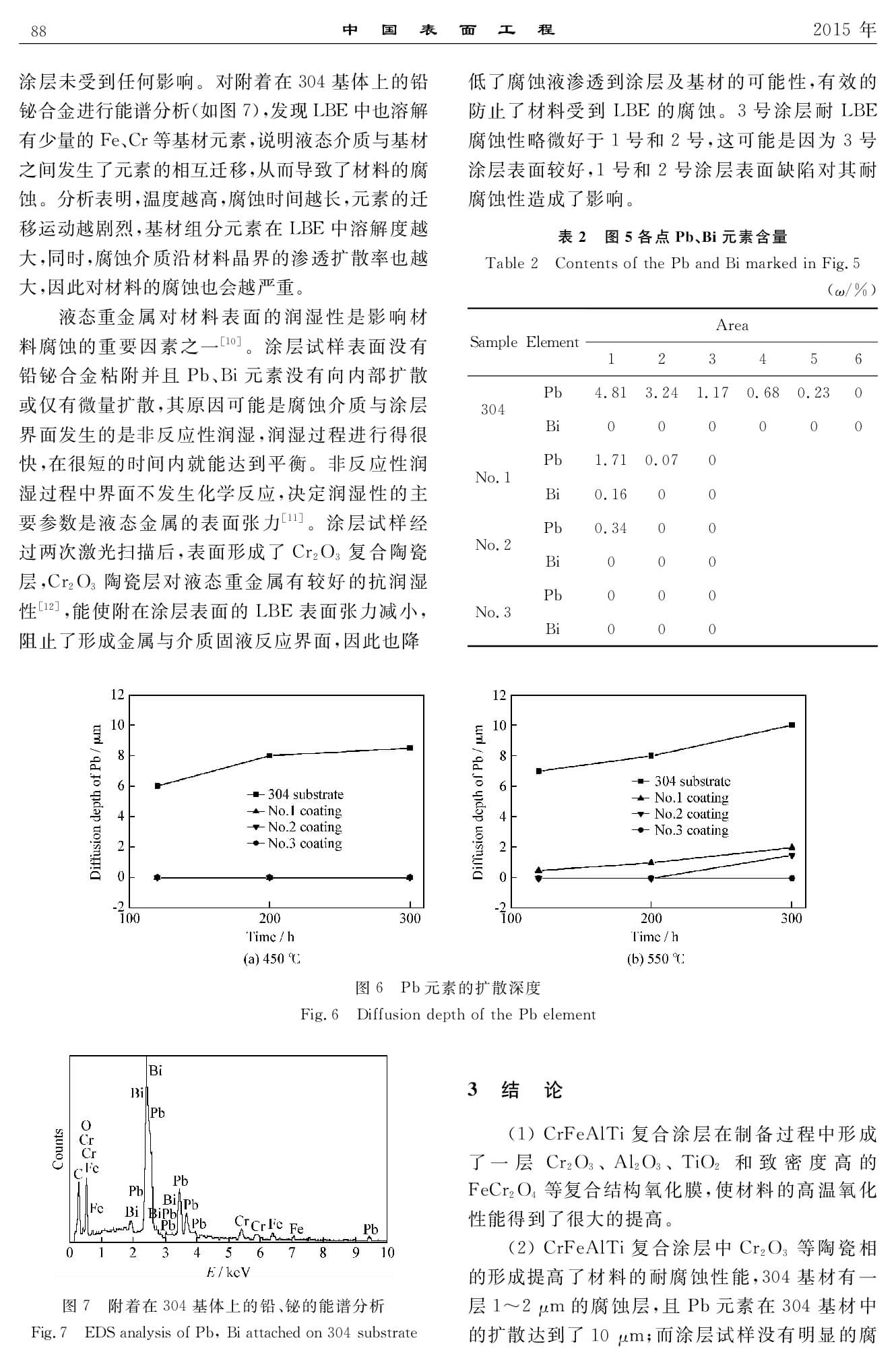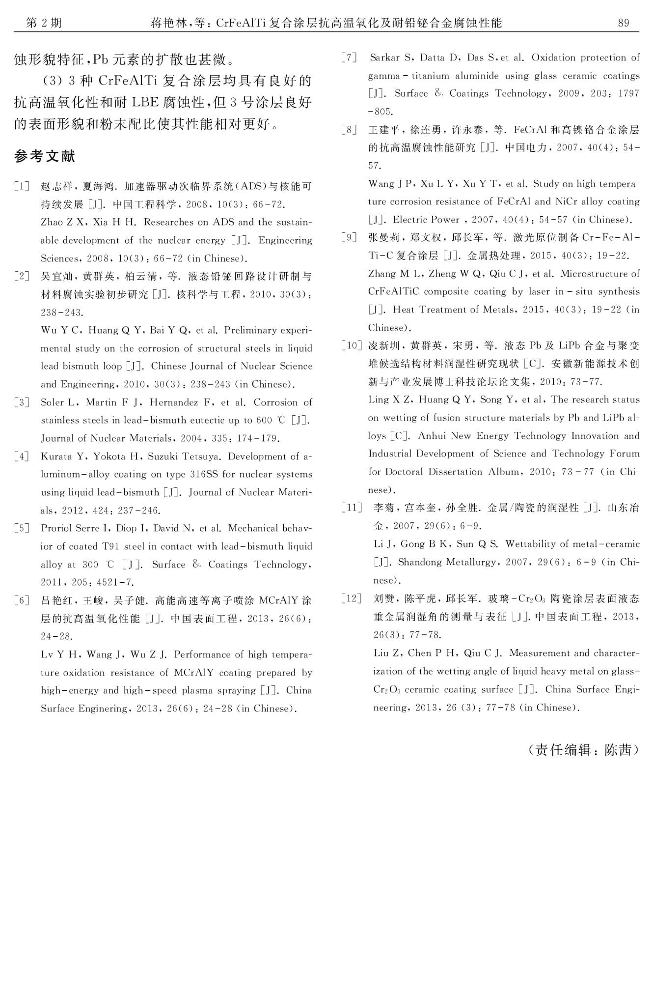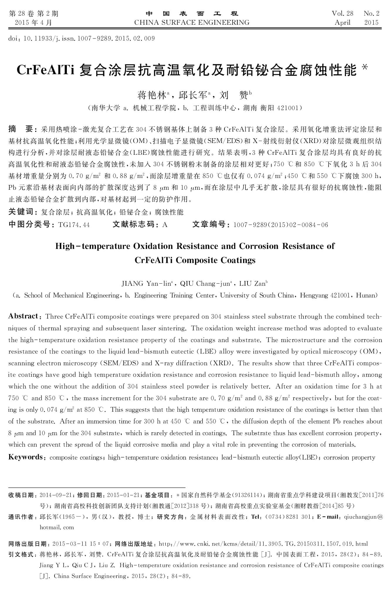 CrFeAlTi复合涂层抗高温氧化及耐铅铋合金腐蚀性能