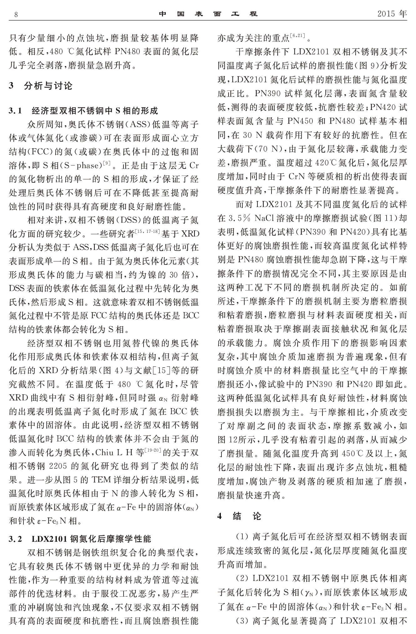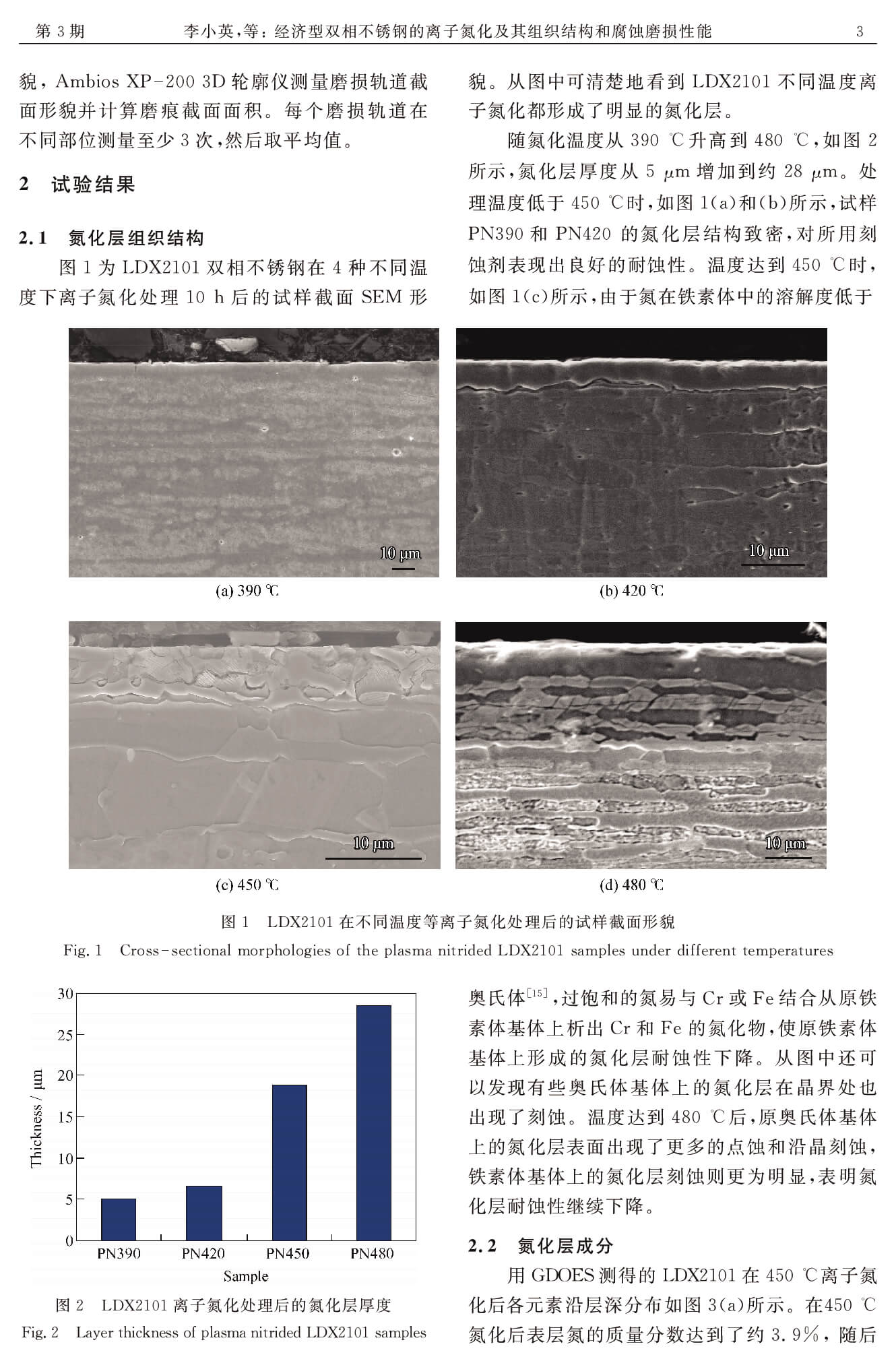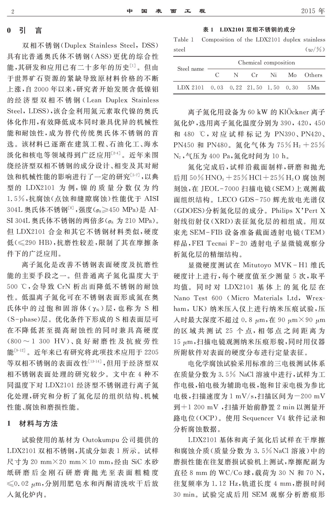 经济型双相不锈钢的离子氮化及其组织结构和腐蚀磨损性能
