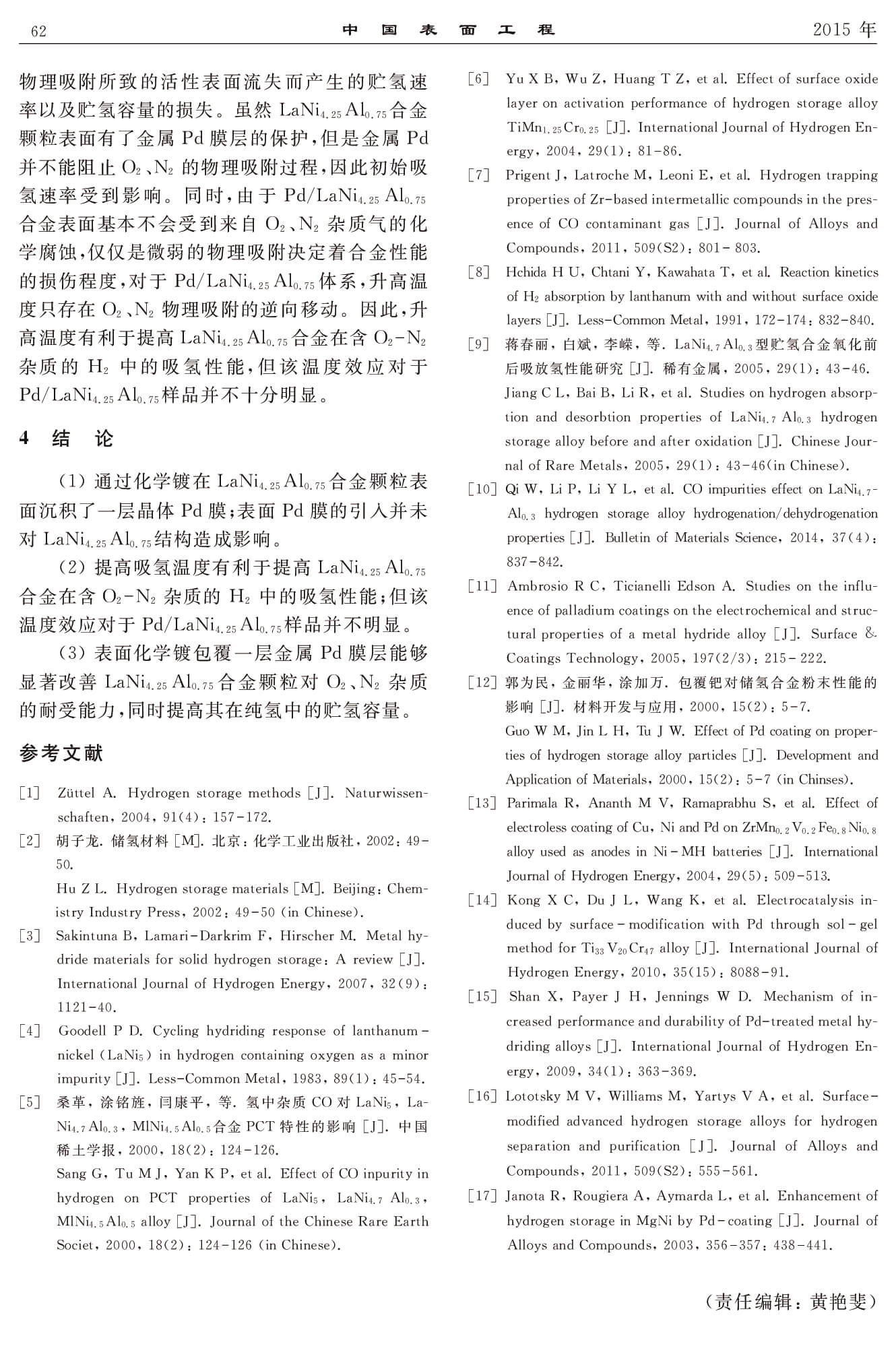表面Pd膜对LaNi4.25Al0.75合金贮氢性能的影响