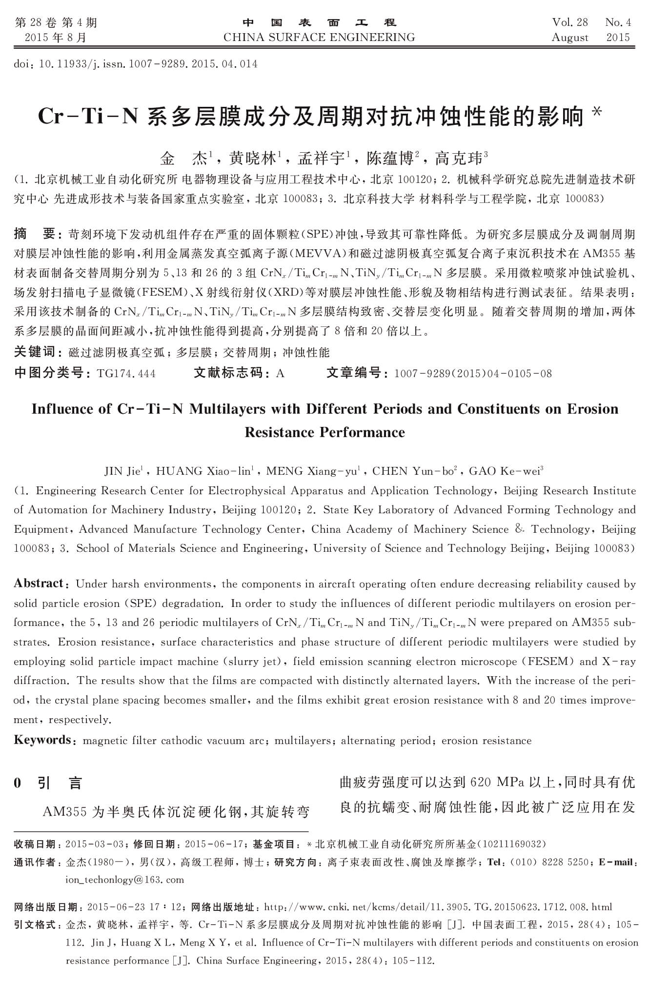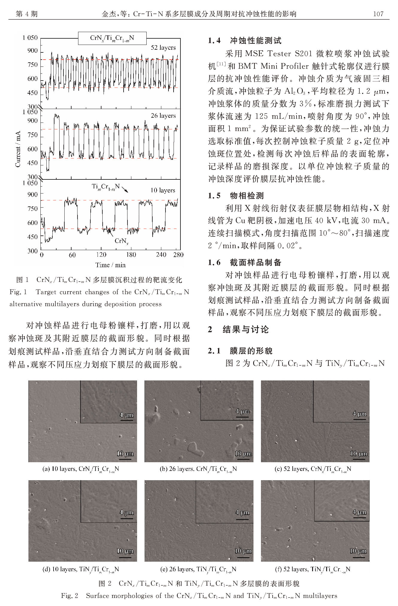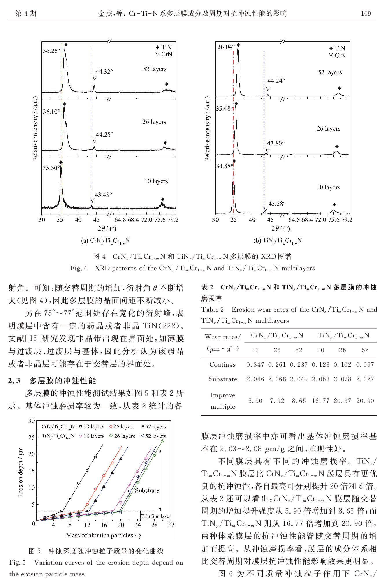 Cr-Ti-N系多层膜成分及周期对抗冲蚀性能的影响