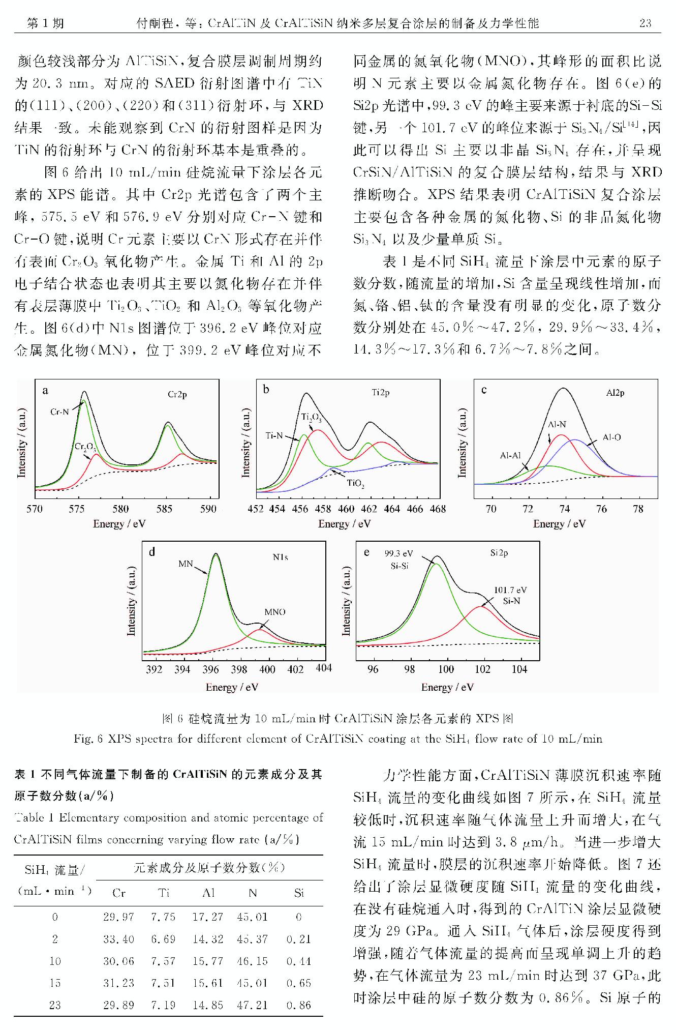 CrAlTiN及CrAlTiSiN纳米多层复合涂层的制备及力学性能