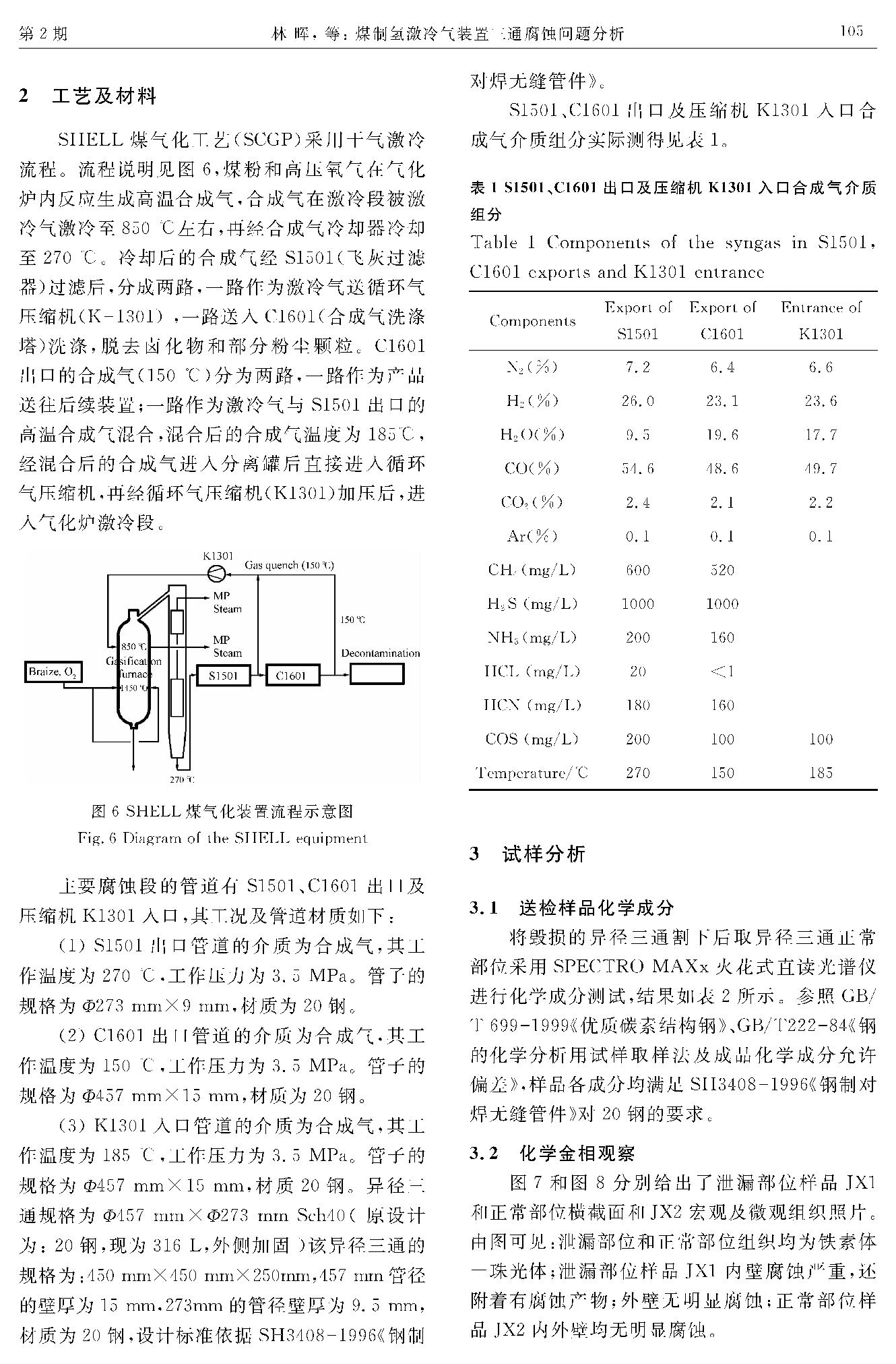 煤制氢激冷气装置三通腐蚀问题分析