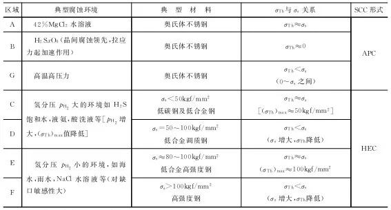 在腐蚀环境一定时,应力腐蚀裂纹的形式及σth与σs的关系如图4-232所示。并见表4-69。