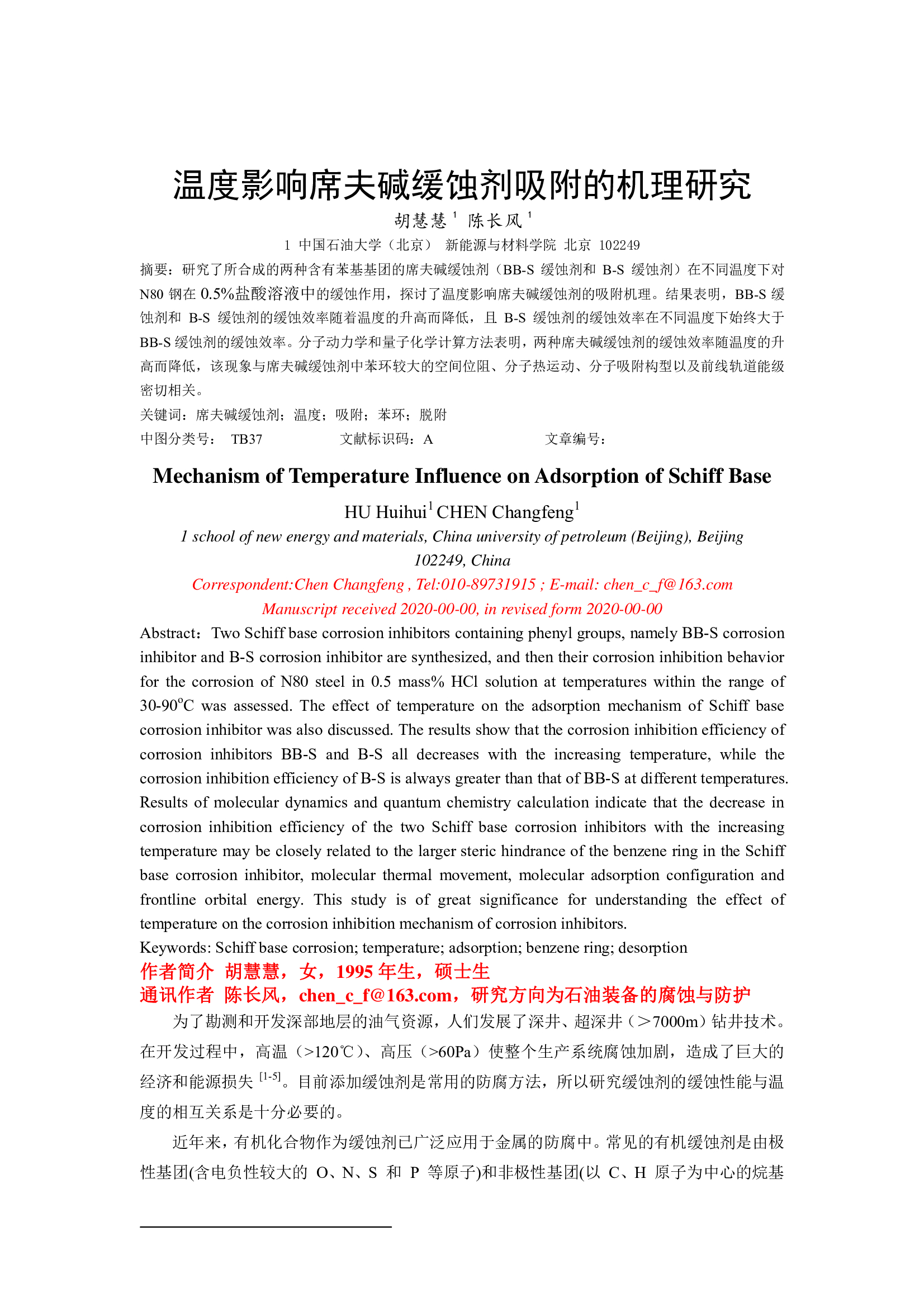 2021-09-18 17:26:54 作者:胡慧慧,陈长风 来源:中国腐蚀与防护学报 分享至: