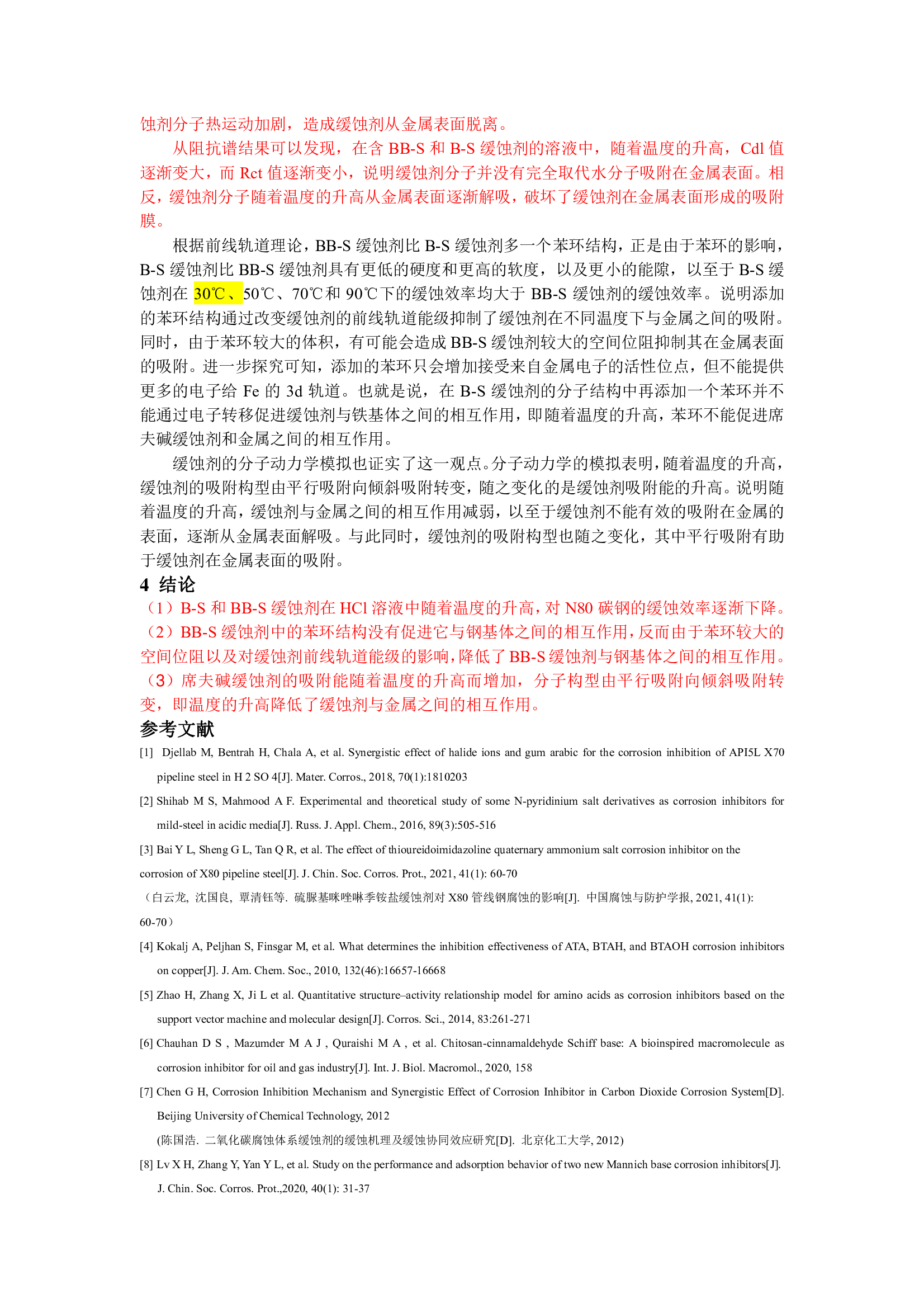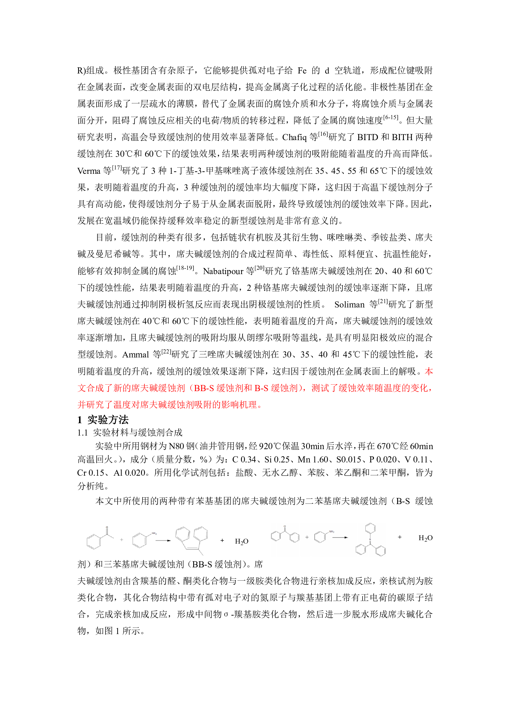 温度影响席夫碱缓蚀剂吸附的机理研究