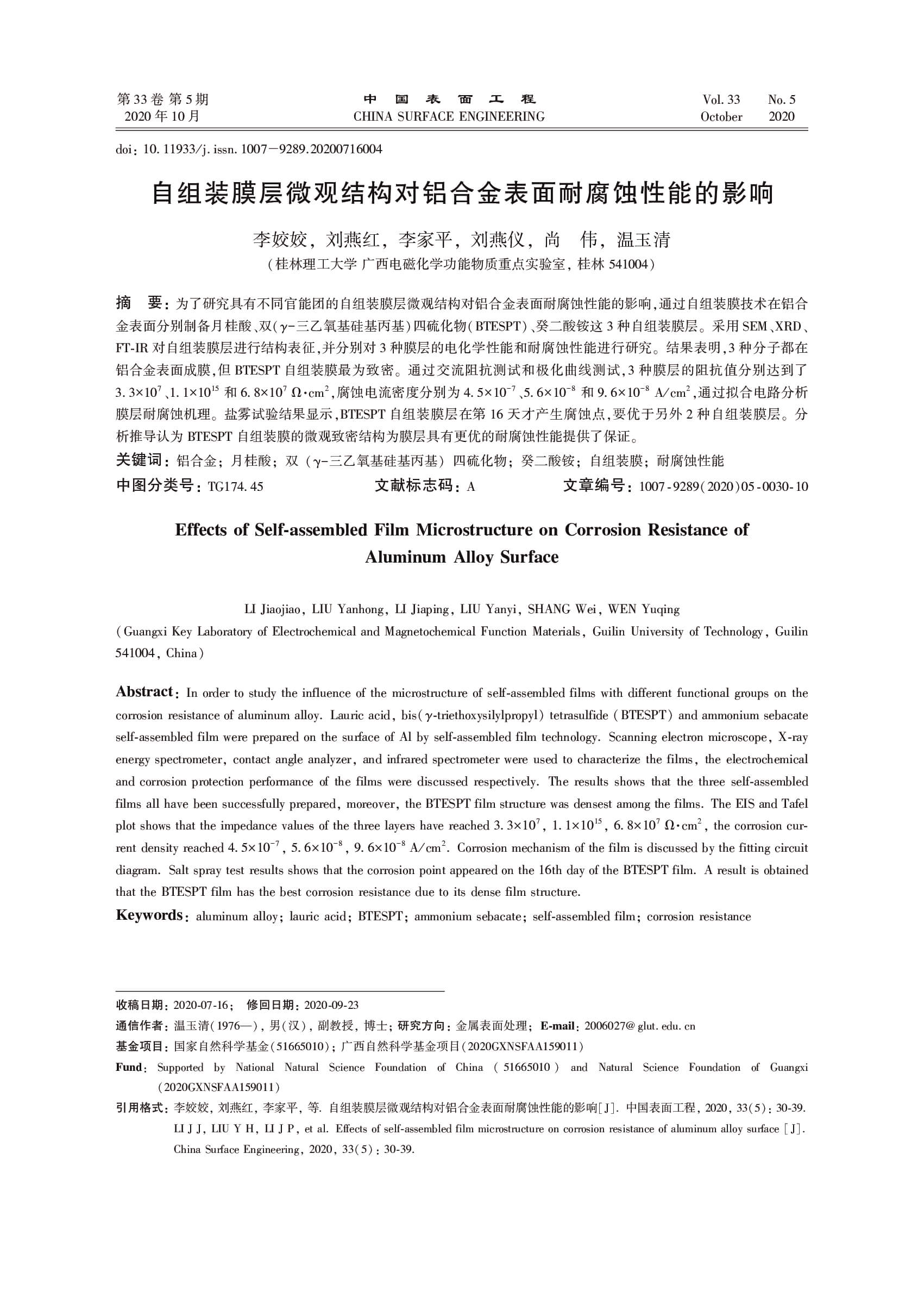 2021-09-23 17:06:02 作者:李姣姣, 刘燕红, 李家平, 刘燕仪, 尚伟, 温玉清 来源:中国表面工程 分享至: