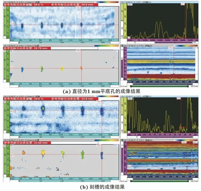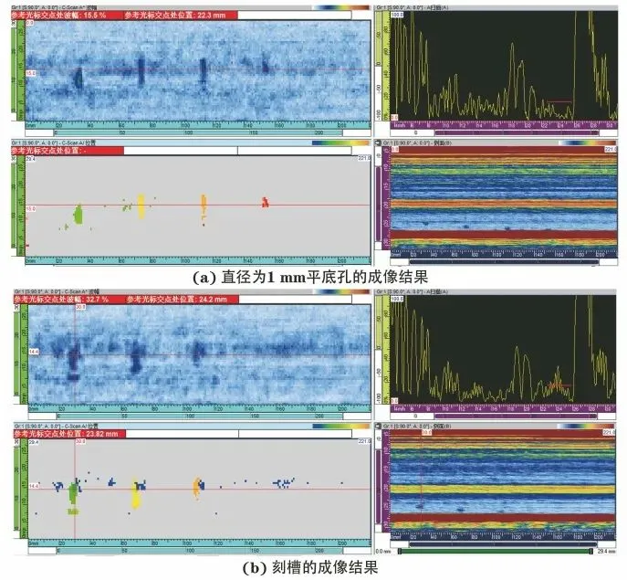 图8 复合板材试块直径为1mm平底孔的相控阵超声成像结果