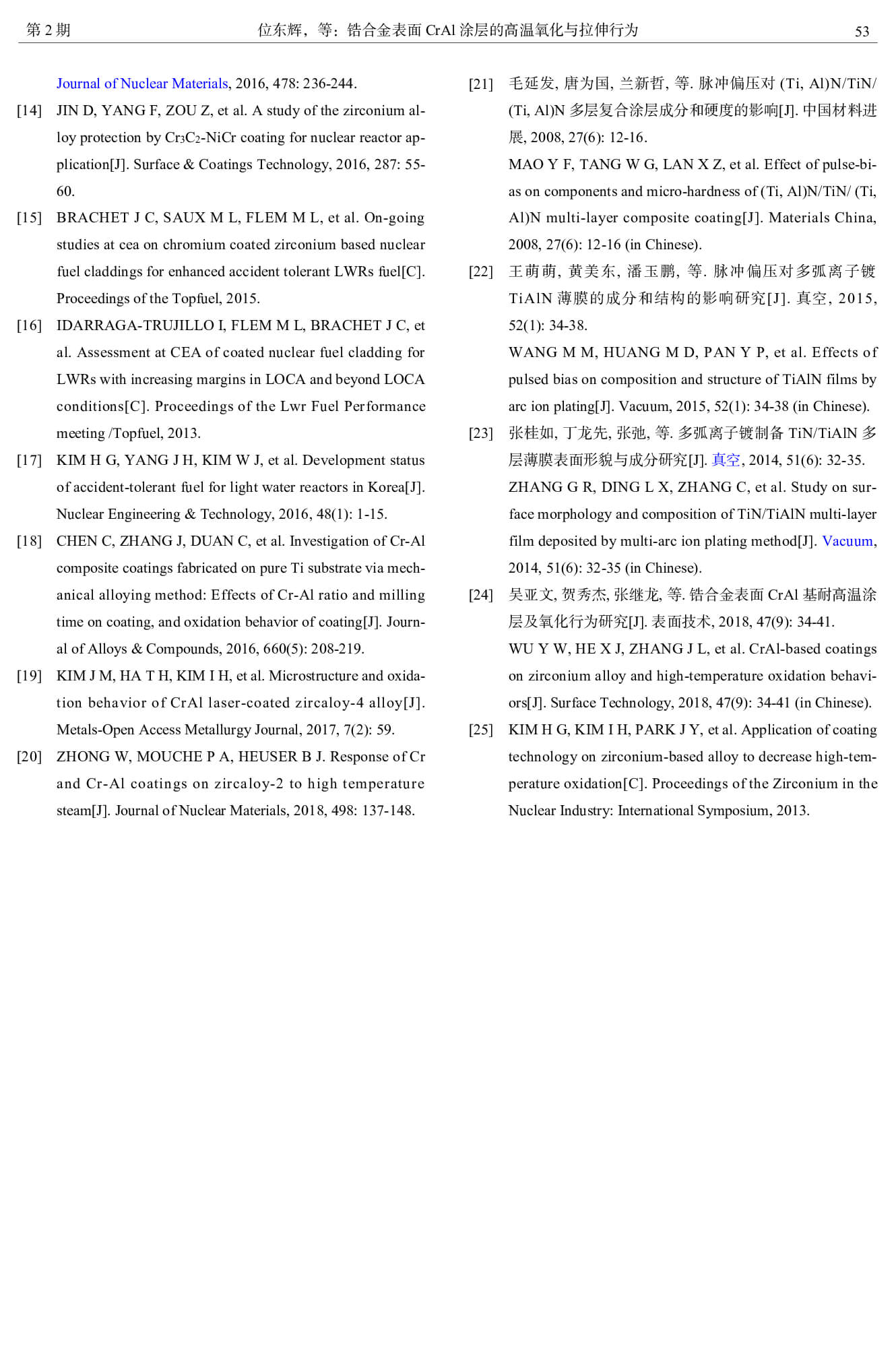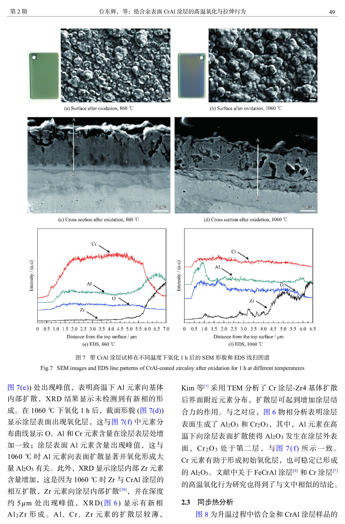 锆合金表面 CrAl 涂层的高温氧化与拉伸行为