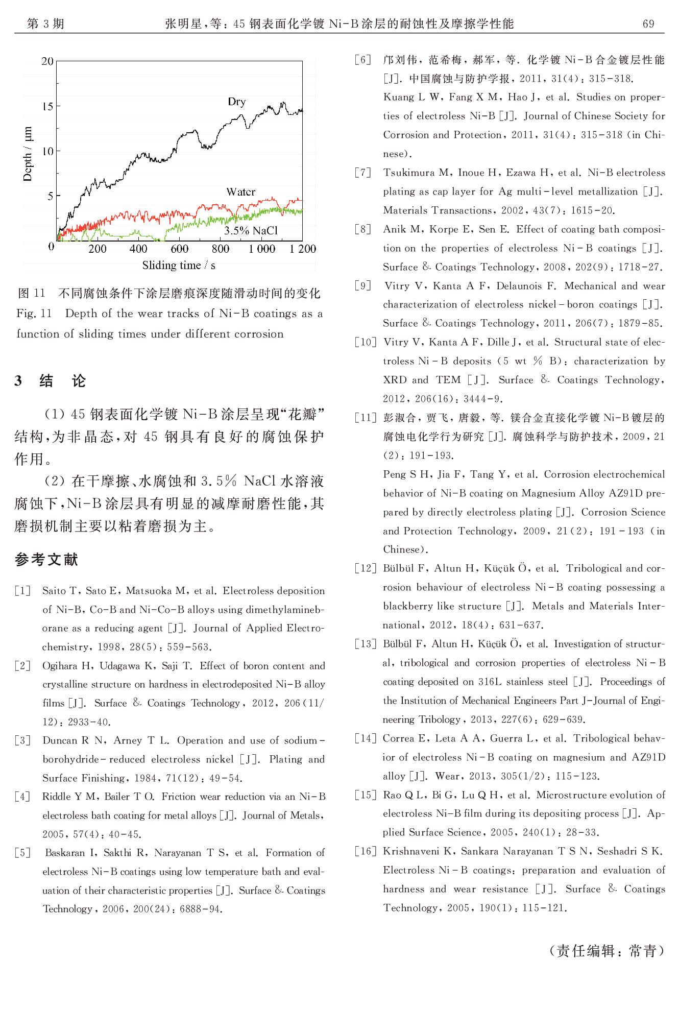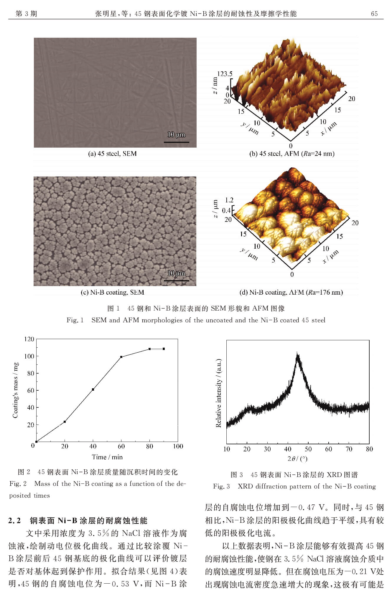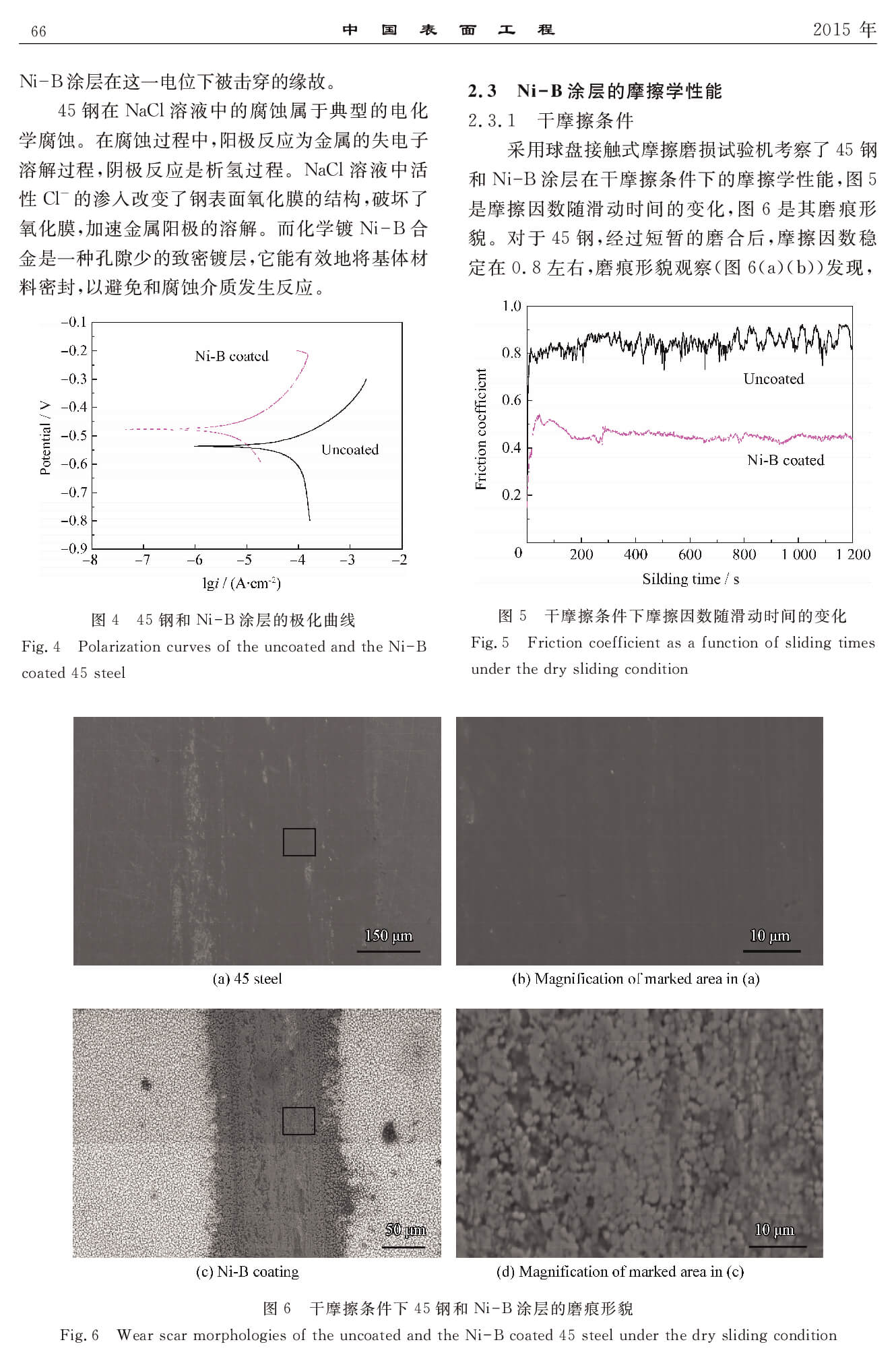 45钢表面化学镀Ni-B涂层的耐蚀性及摩擦学性能
