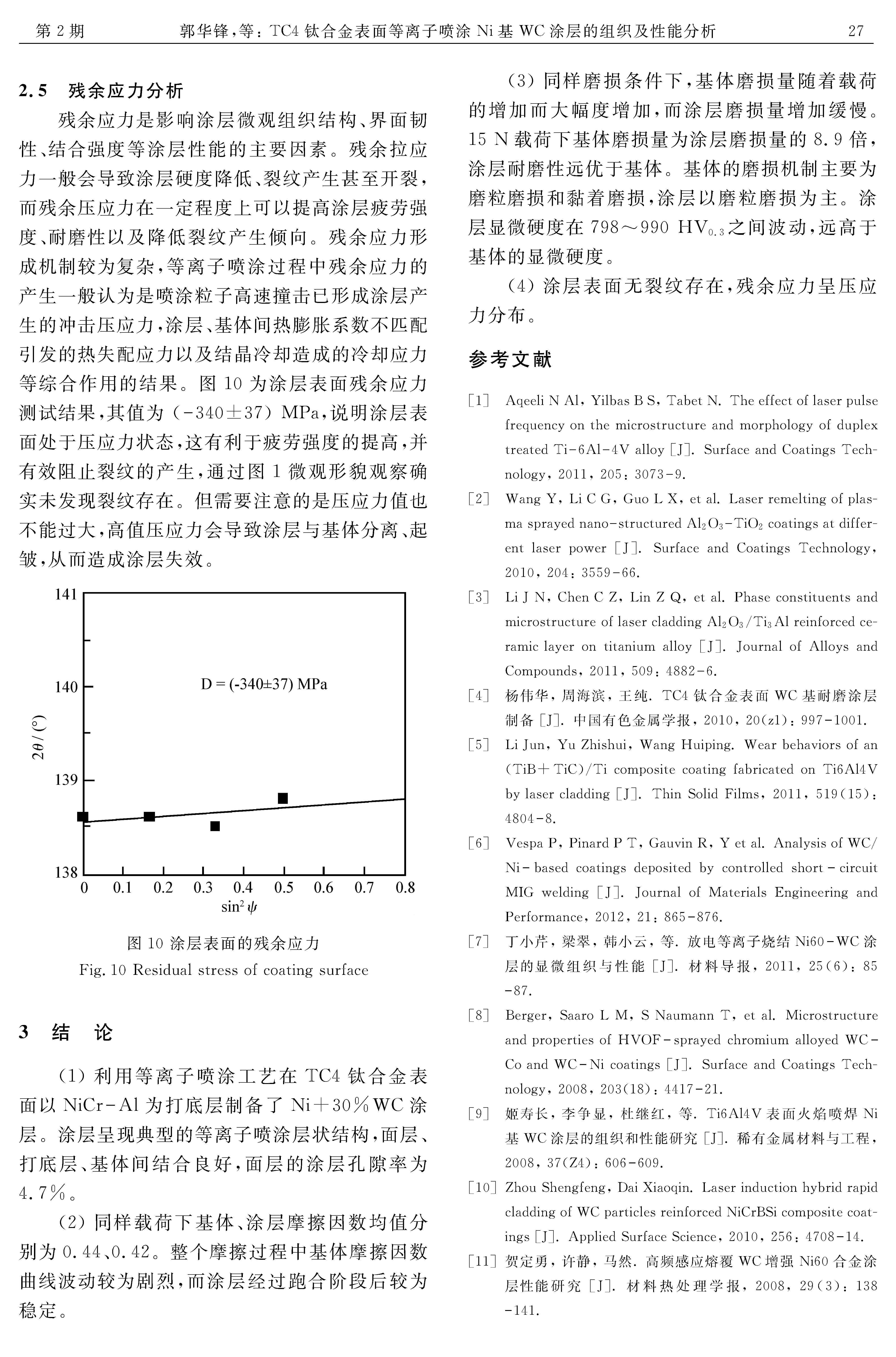 TC4钛合金表面等离子喷涂Ni基WC涂层的组织及性能分析