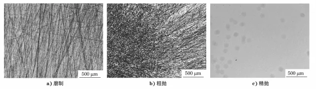 图3 三步法磨抛的TA10合金金相试样不同步骤的表面形貌