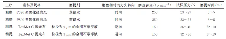表4 四步法磨抛α+β型钛合金金相试样的工艺参数