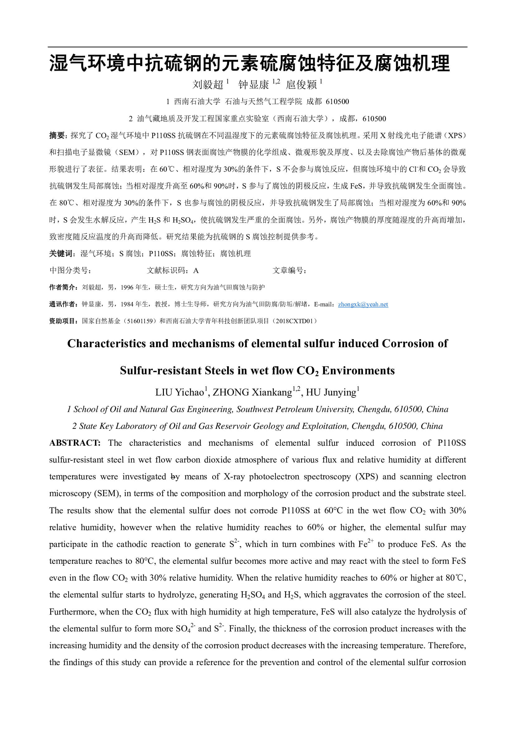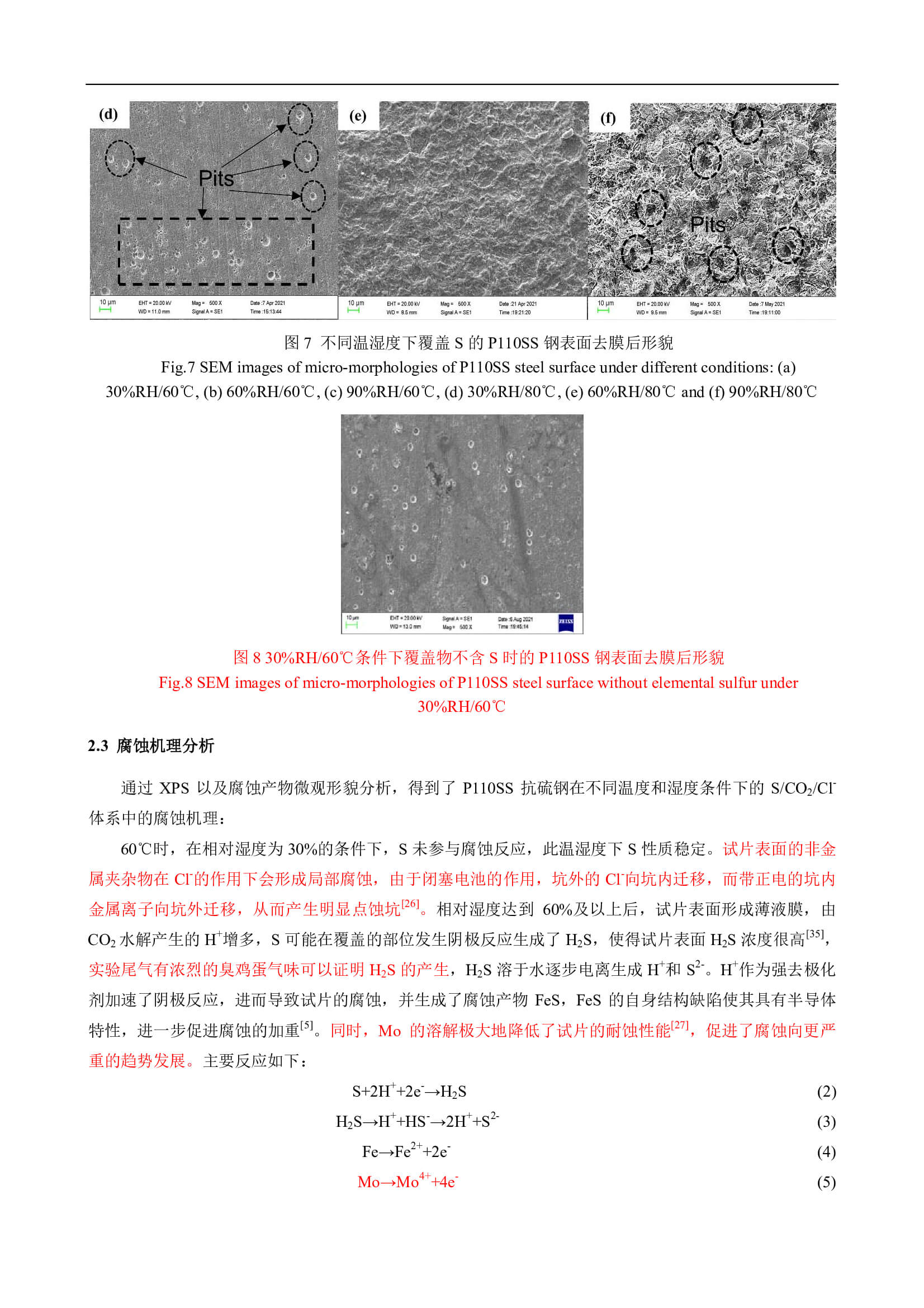 湿气环境中抗硫钢的元素硫腐蚀特征及腐蚀机理