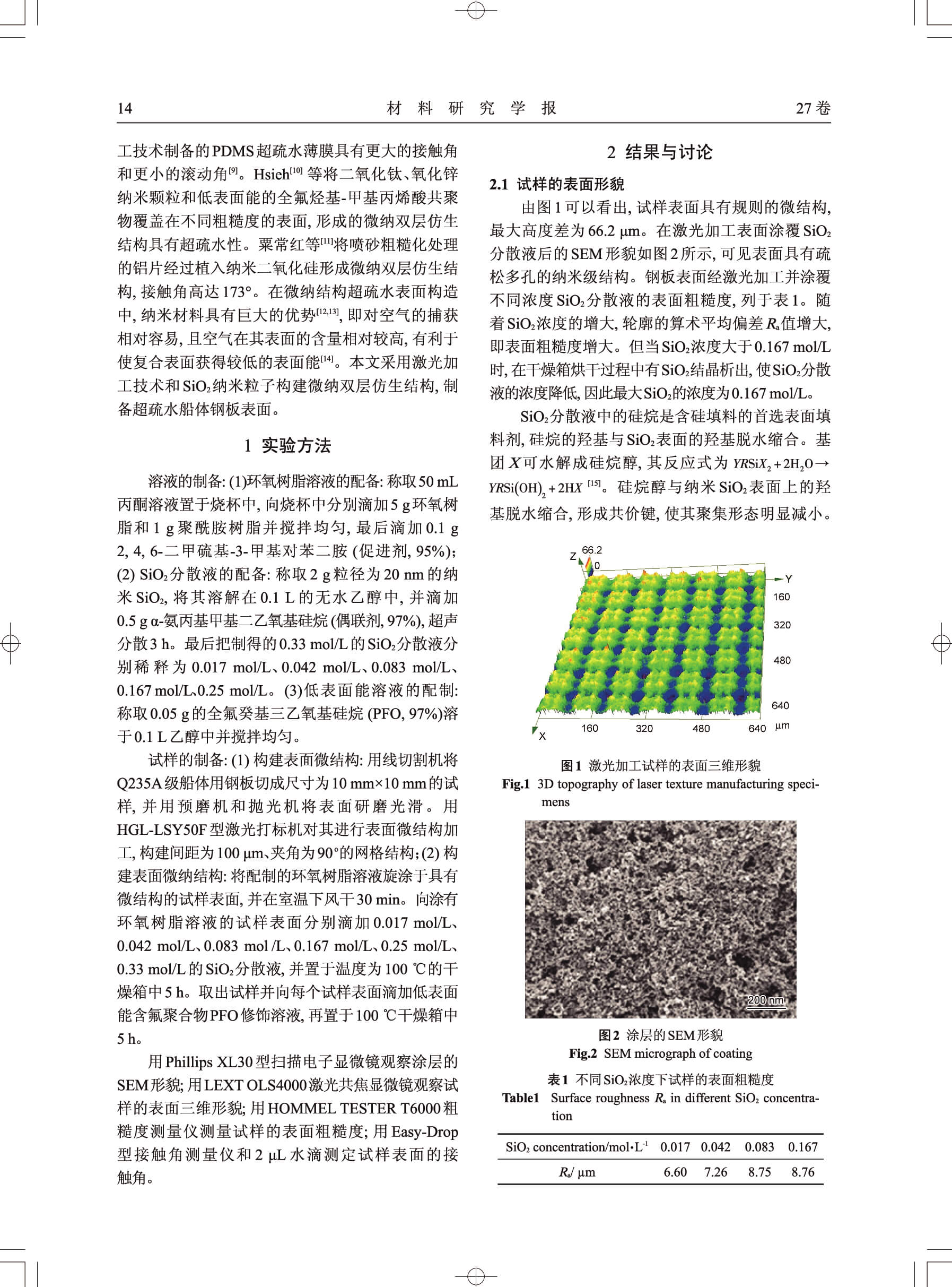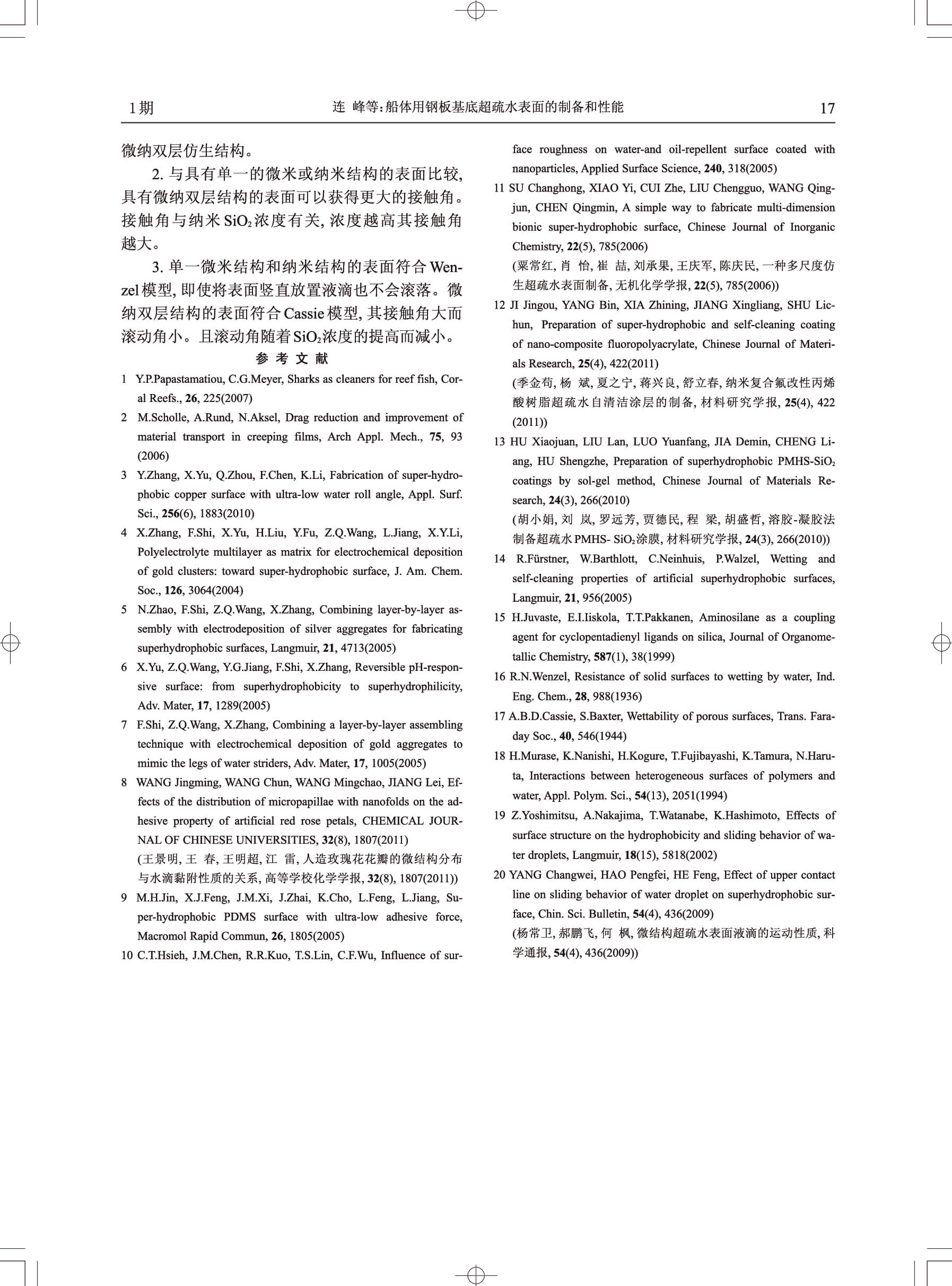 船体用钢板基底超疏水表面的制备和性能