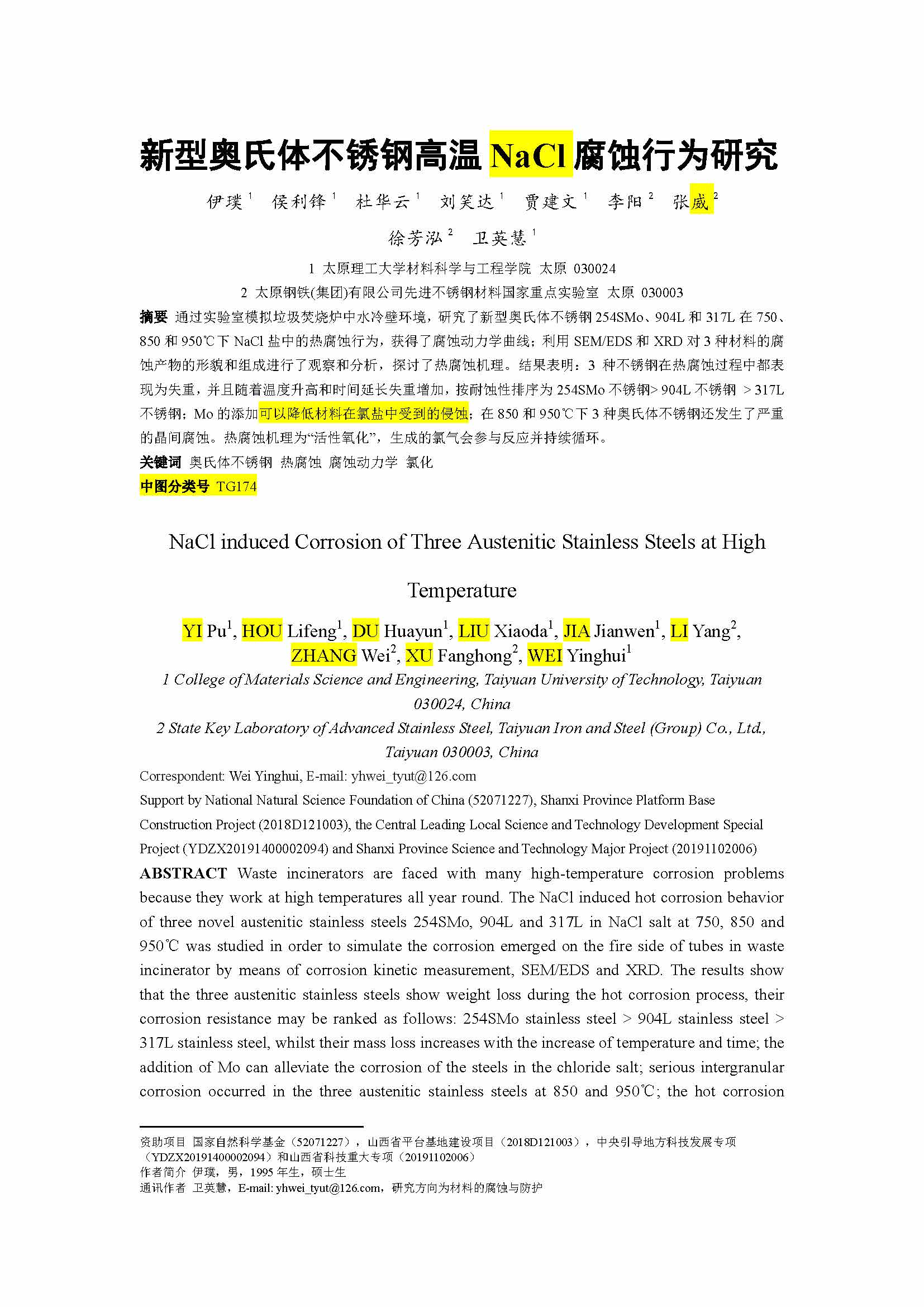 新型奥氏体不锈钢高温NaCl腐蚀行为研究