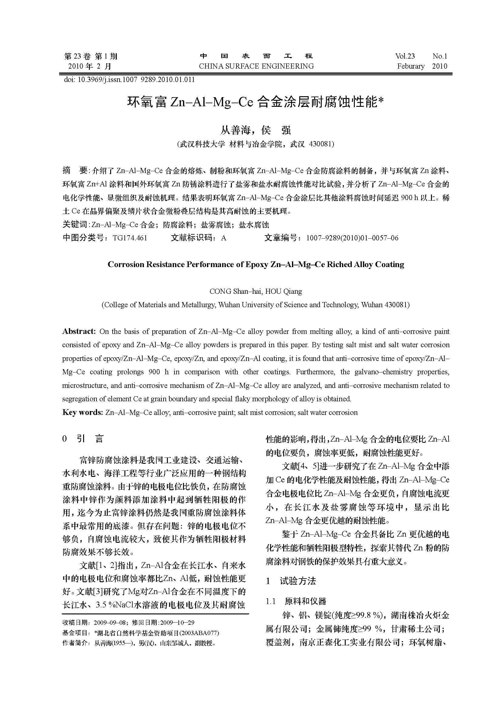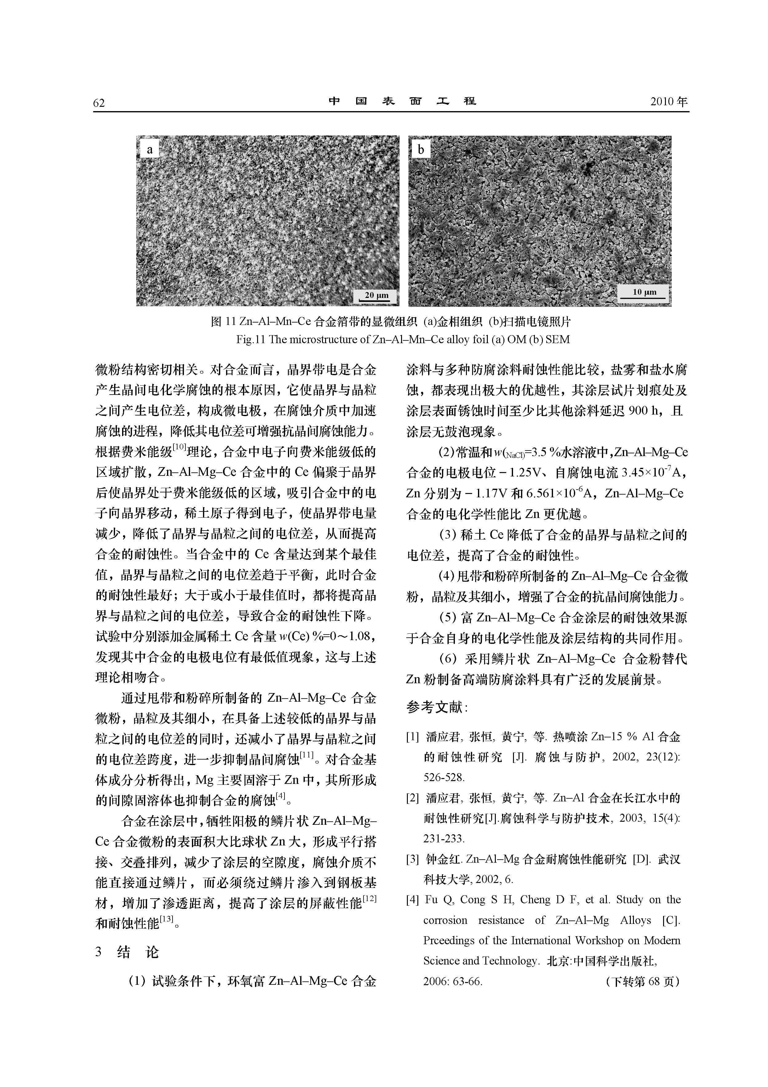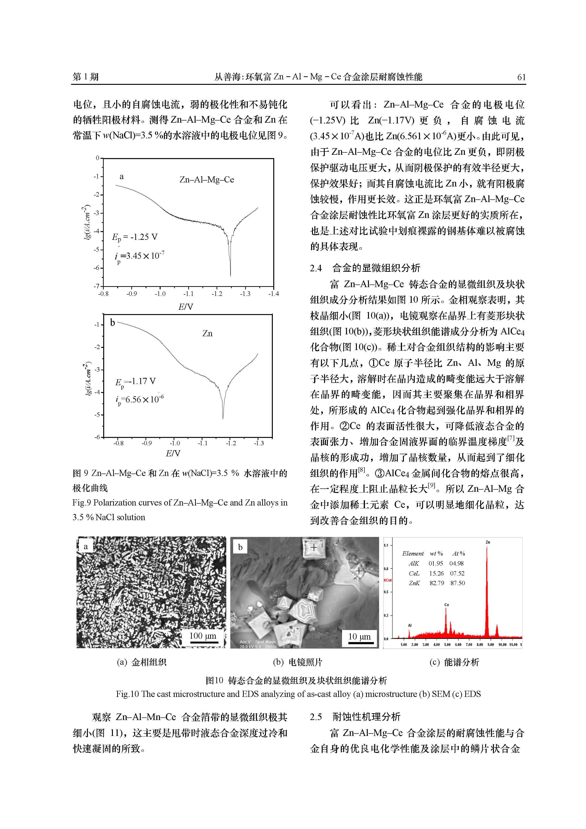 标签: Zn–Al–Mg–Ce合金, 防腐涂料, 盐雾腐蚀, 盐水腐蚀