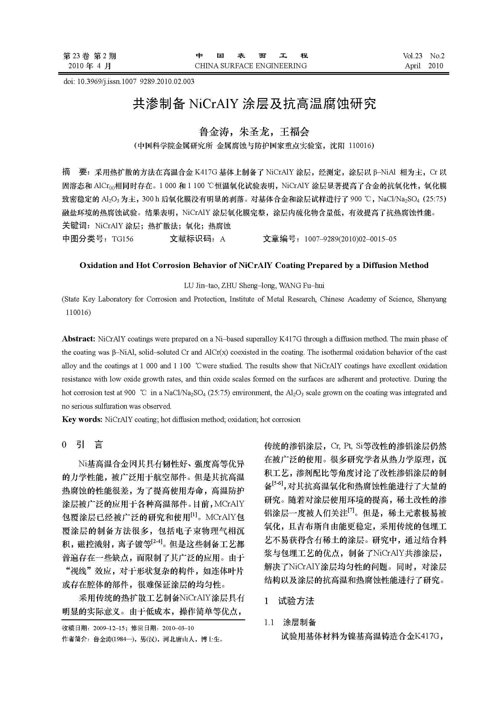 共渗制备NiCrAlY涂层及抗高温腐蚀研究