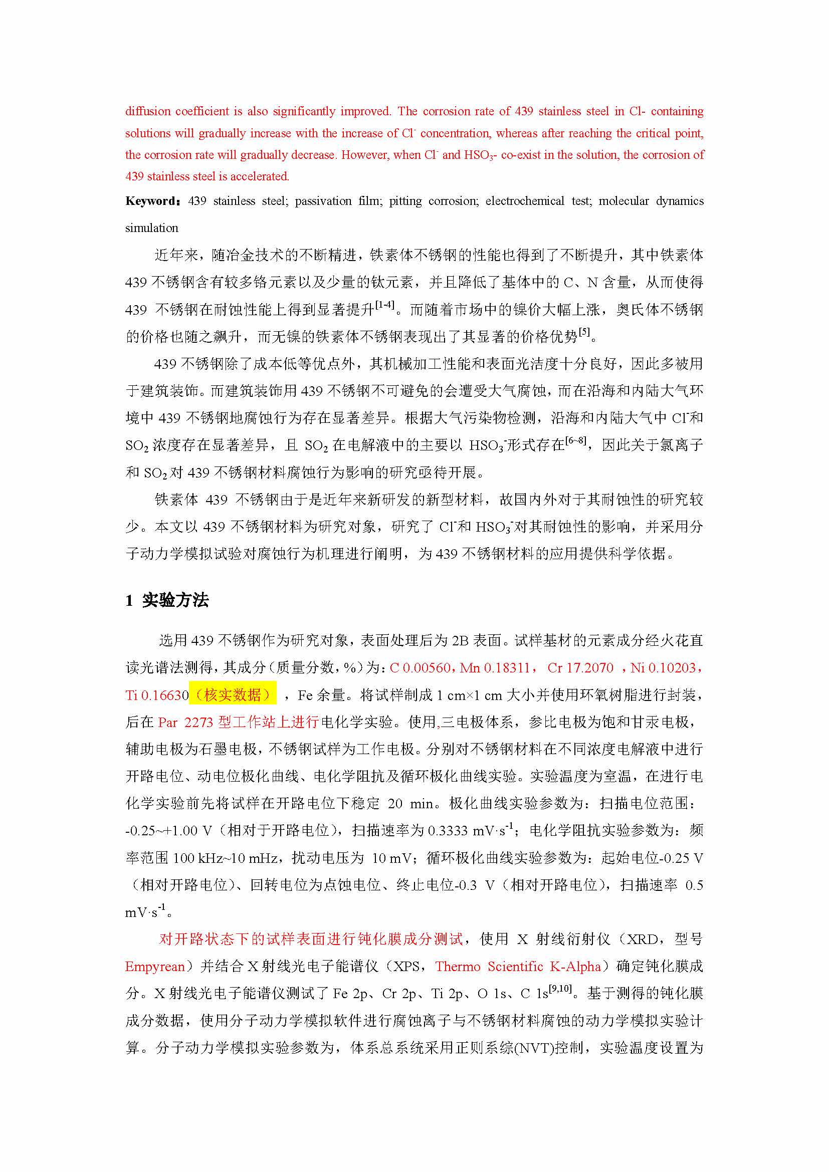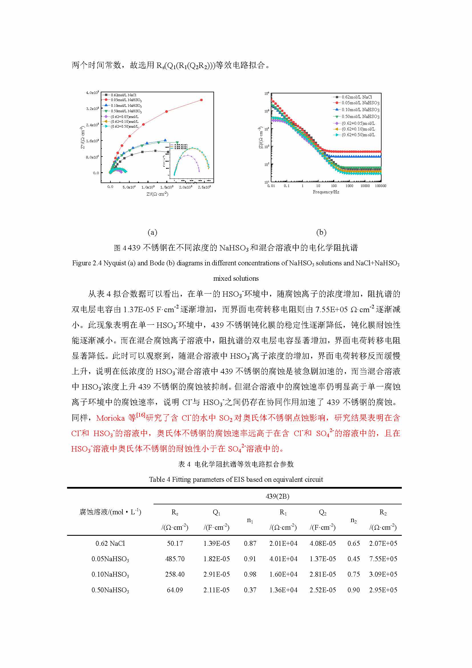 Cl-与HSO3-对建筑用439不锈钢腐蚀行为的影响