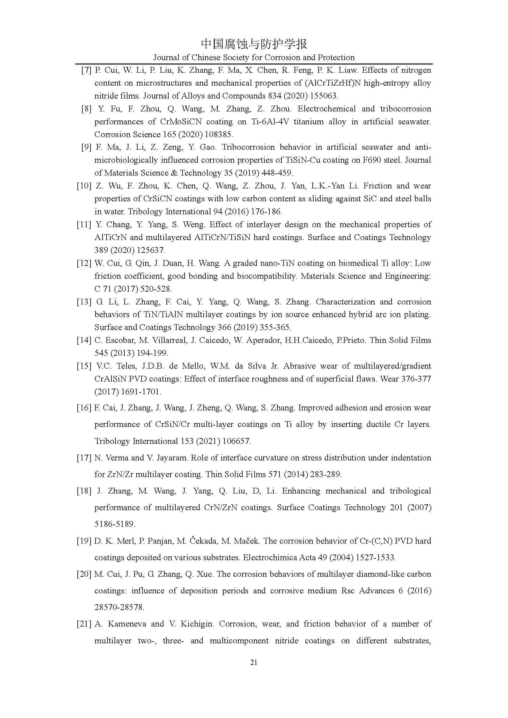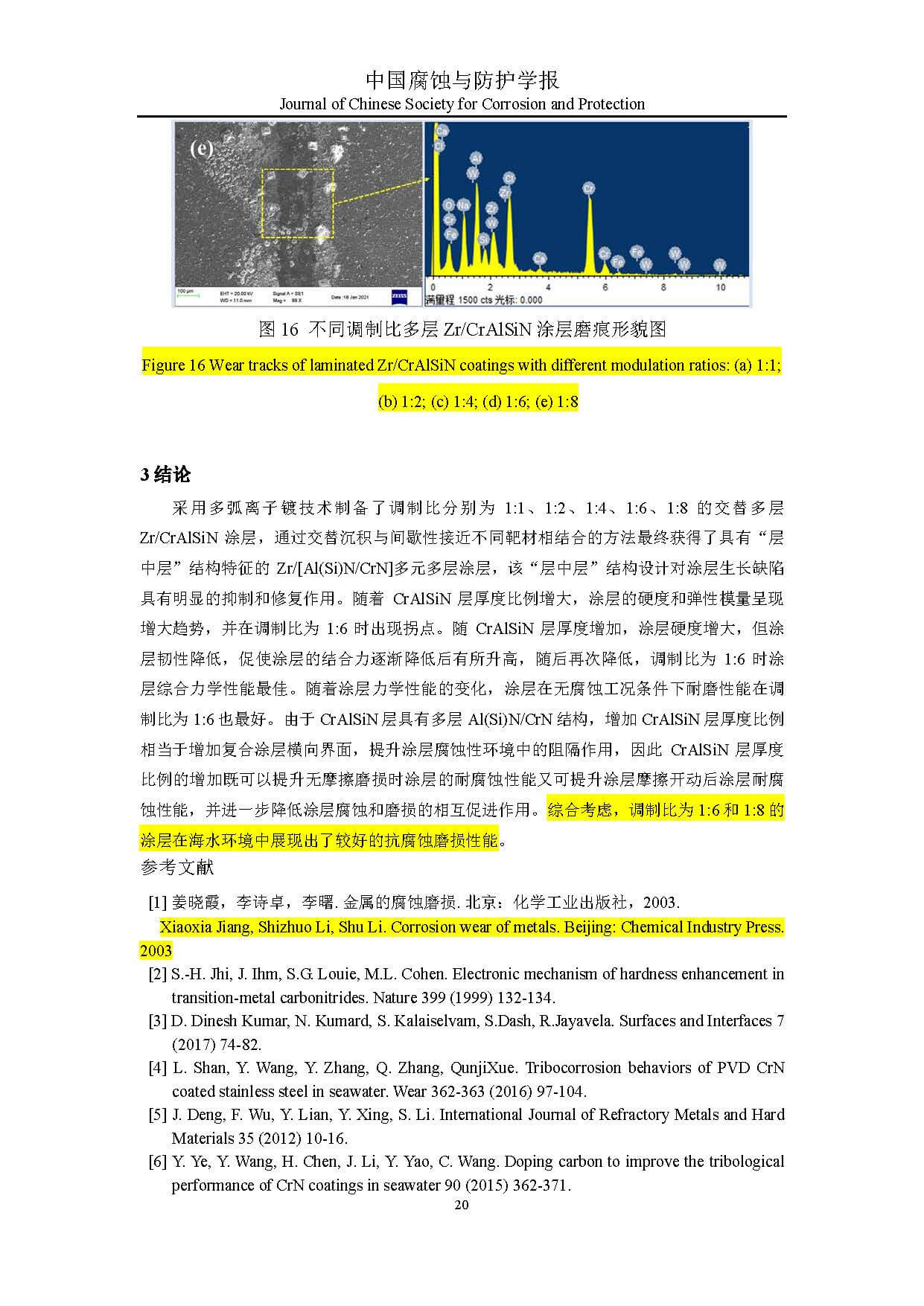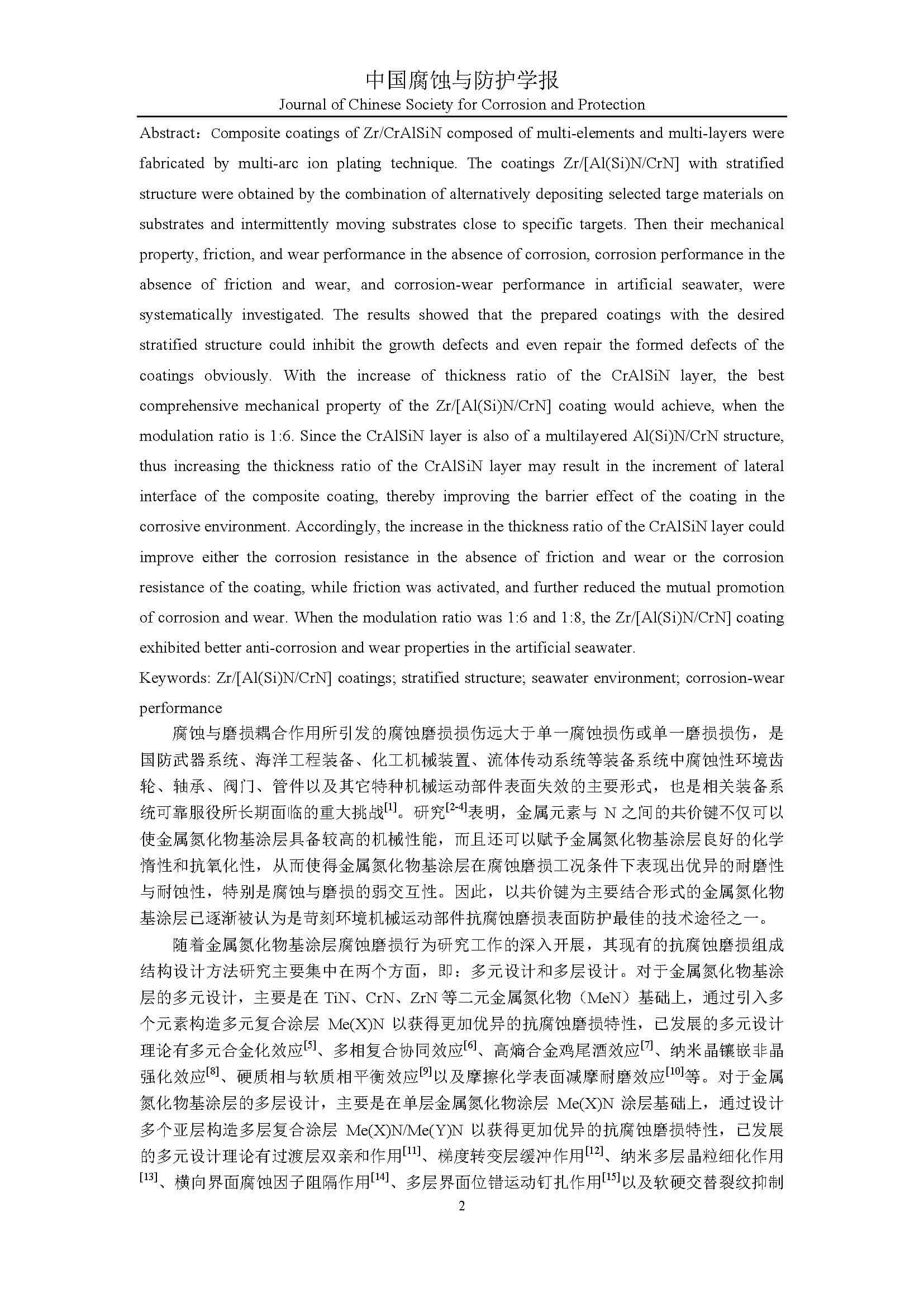标签: Zr/[Al(Si)N/CrN]涂层, “层中层”结构, 海水环境, 腐蚀磨损特性