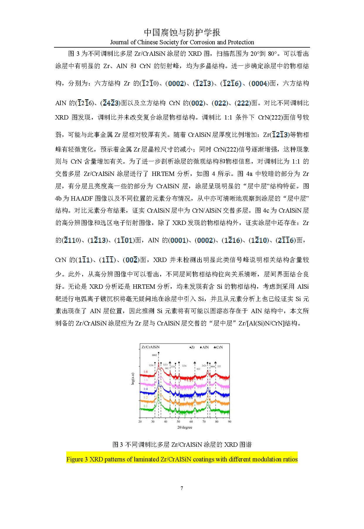 具有“层中层”结构的Zr/[Al(Si)N/CrN]涂层制备及其在海水环境中腐蚀磨损特性