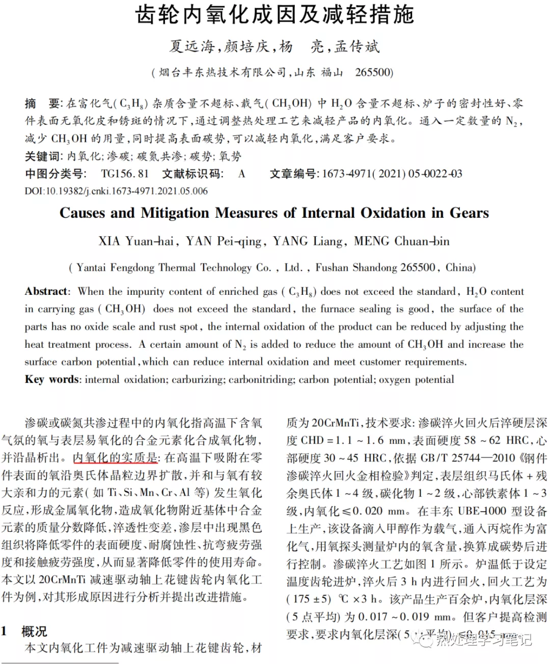 齿轮内氧化成因及减轻措施