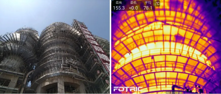 在对反应釜、高塔温度的实时检测中,FOTRIC 热像仪能够提供精准的非接触式测量,继而免去大量繁琐的贴合式、探入式传感器的安装和使用,有效降低了繁杂的学习和使用成本。