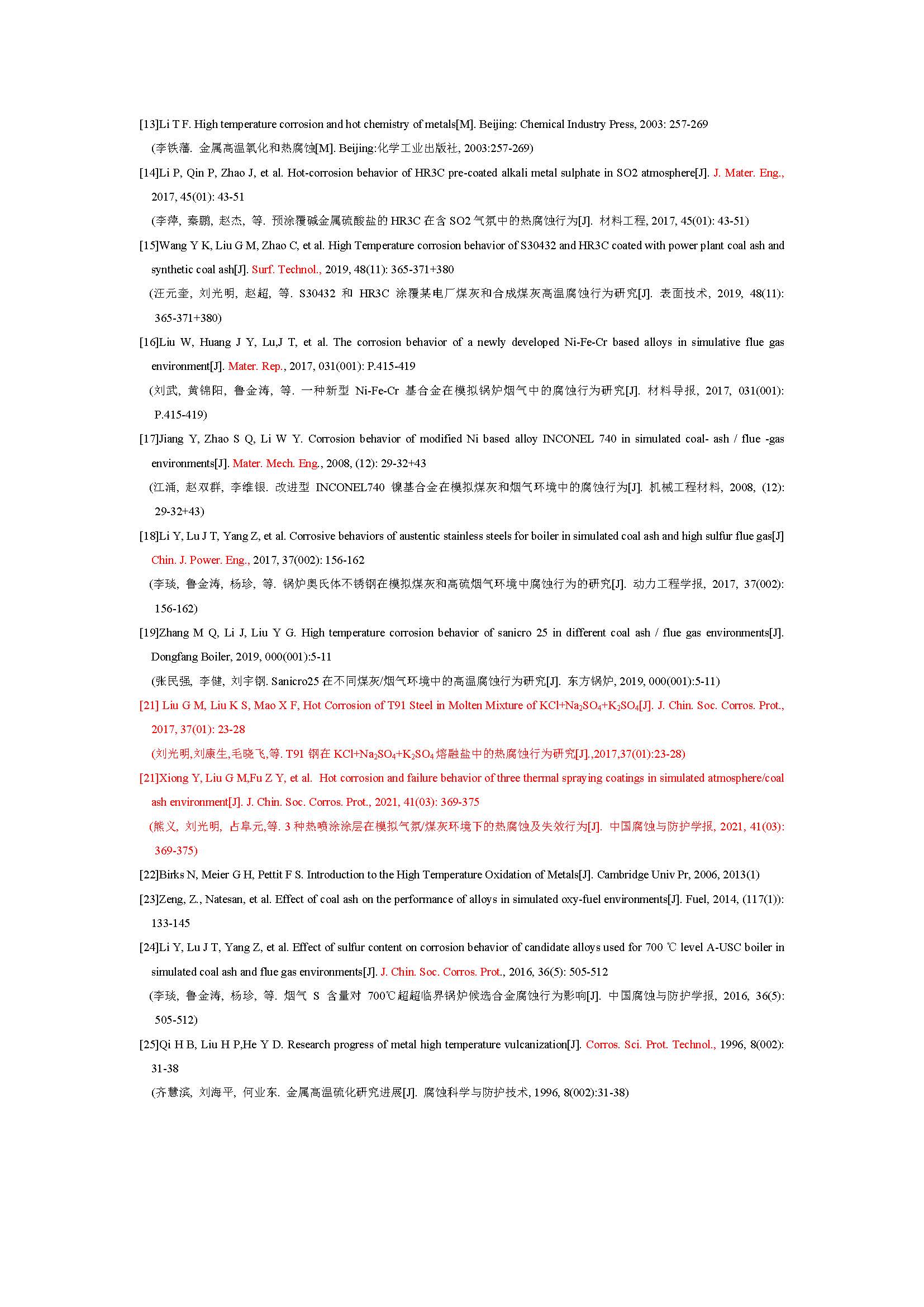 标签: Sanicro 25, 高温腐蚀, 高硫煤灰, 硫酸盐