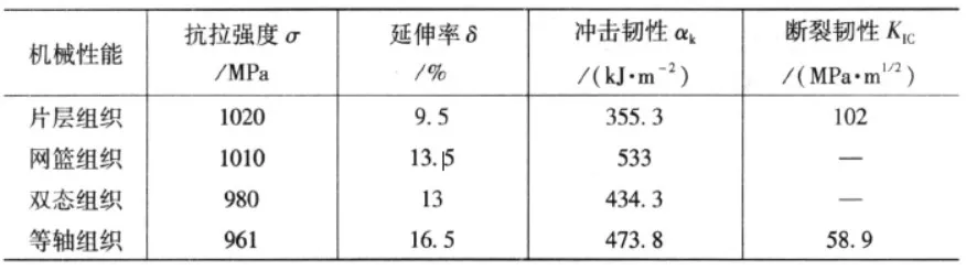 表1 TC4合金四种典型组织对性能的影响