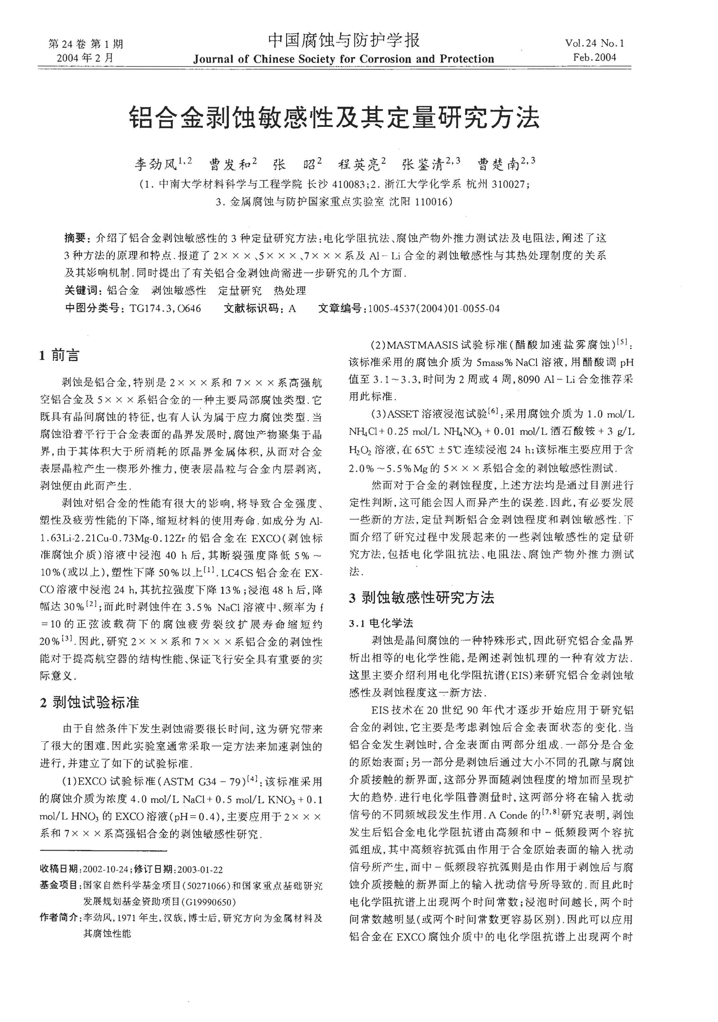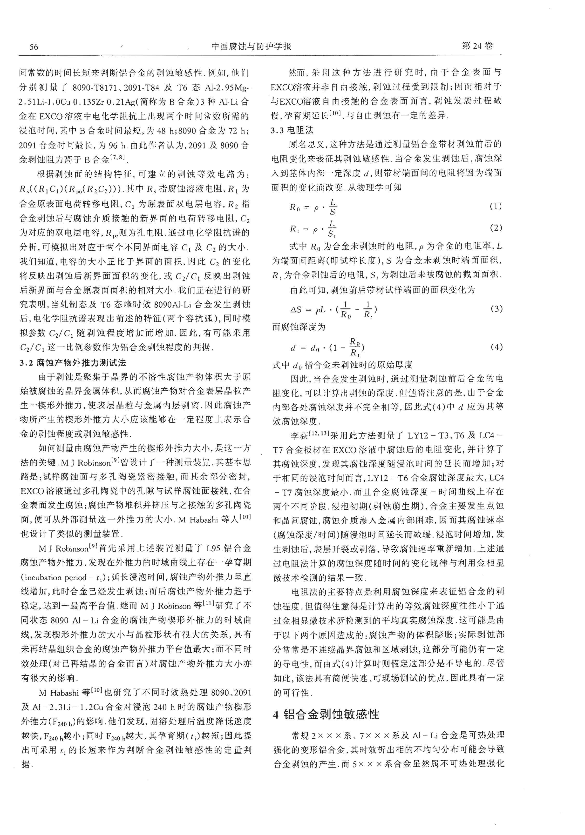 铝合金剥蚀敏感性及其定量研究方法