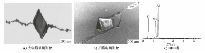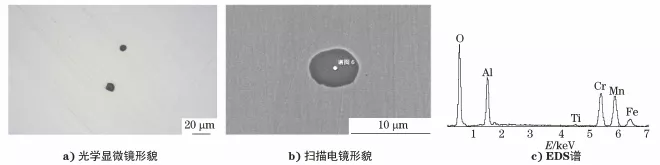 图3 氧化铝夹杂物的微观形貌及EDS谱