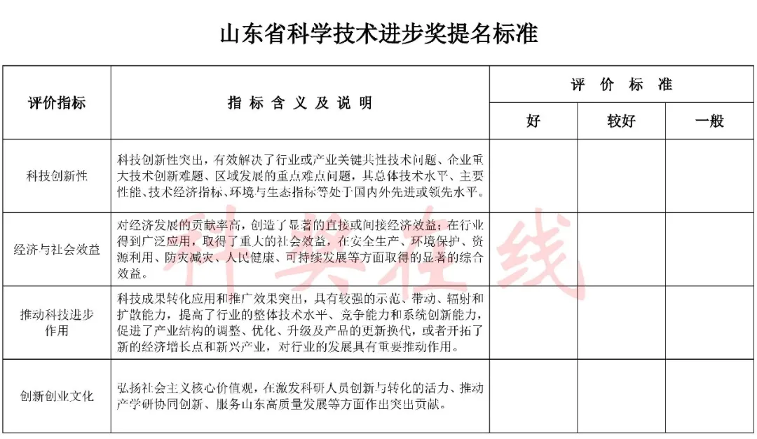 坚持科技创新质量、绩效、贡献为核心的奖励导向,按照基础研究、应用研究和技术开发、社会公益研究等不同类型创新活动的成果和人才特点,深入实施分类评审,全面准确评价科技成果的科学、技术、经济、社会、文化价值。
