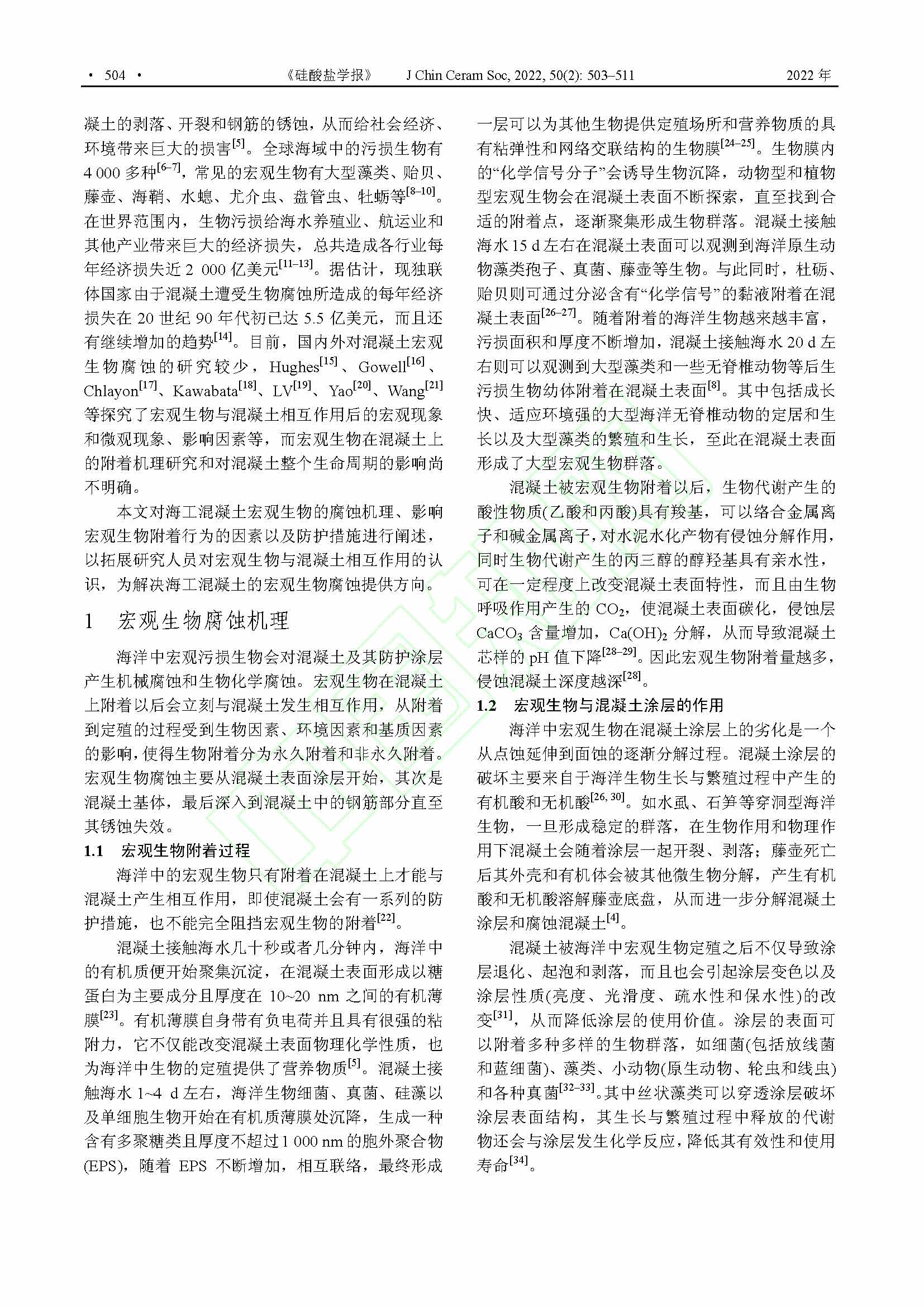 海洋环境下混凝土的宏观生物腐蚀研究进展