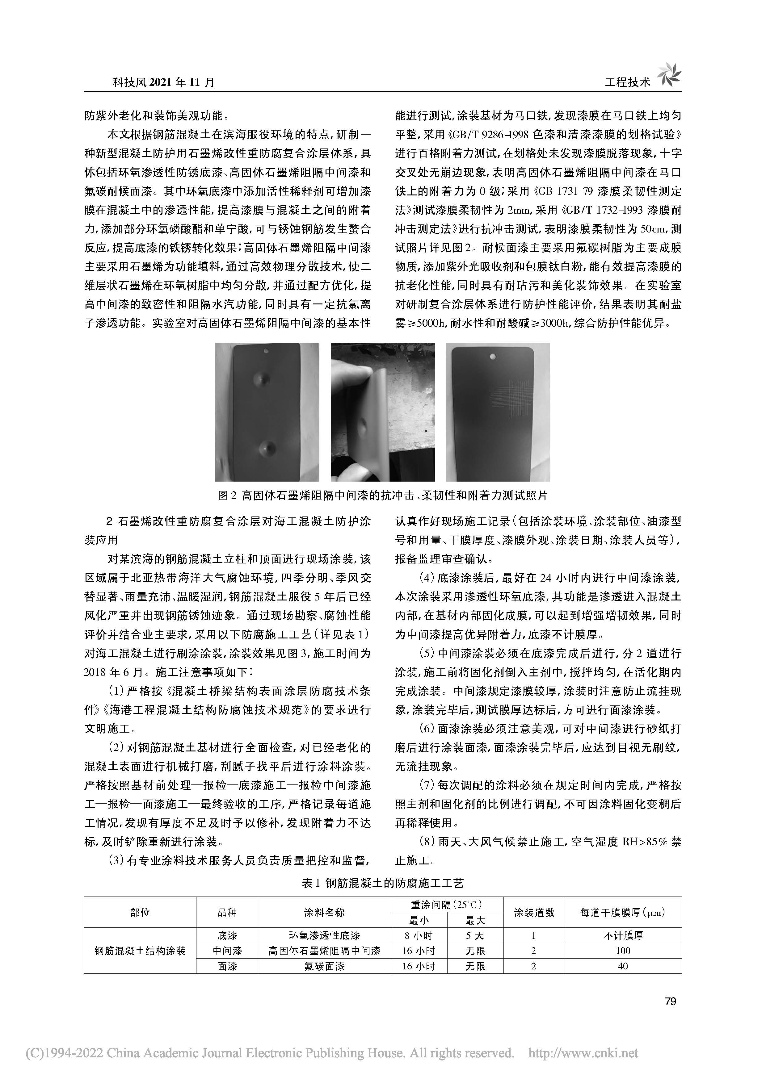 石墨烯重防腐涂层对滨海钢筋混凝土的防护性能研究