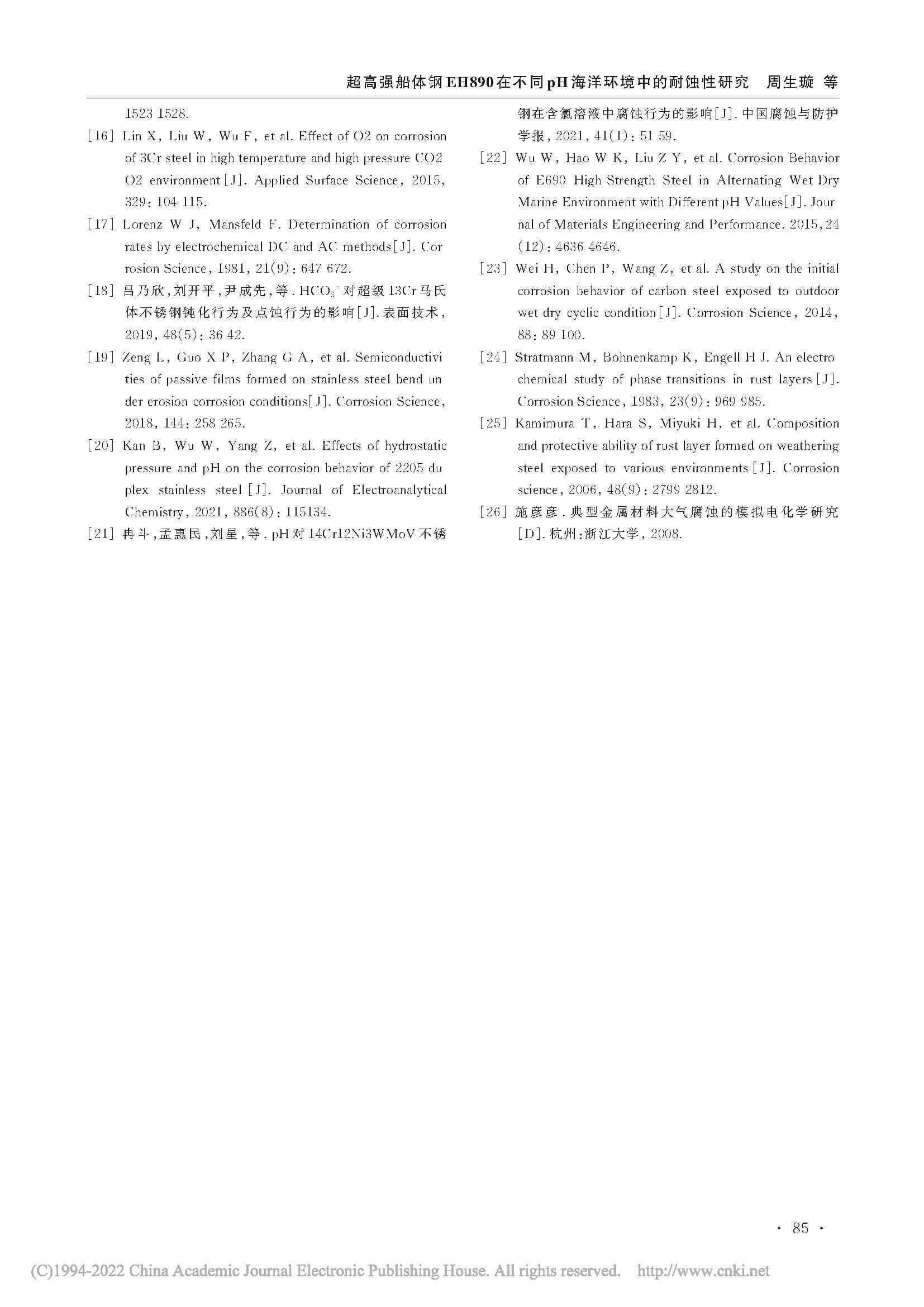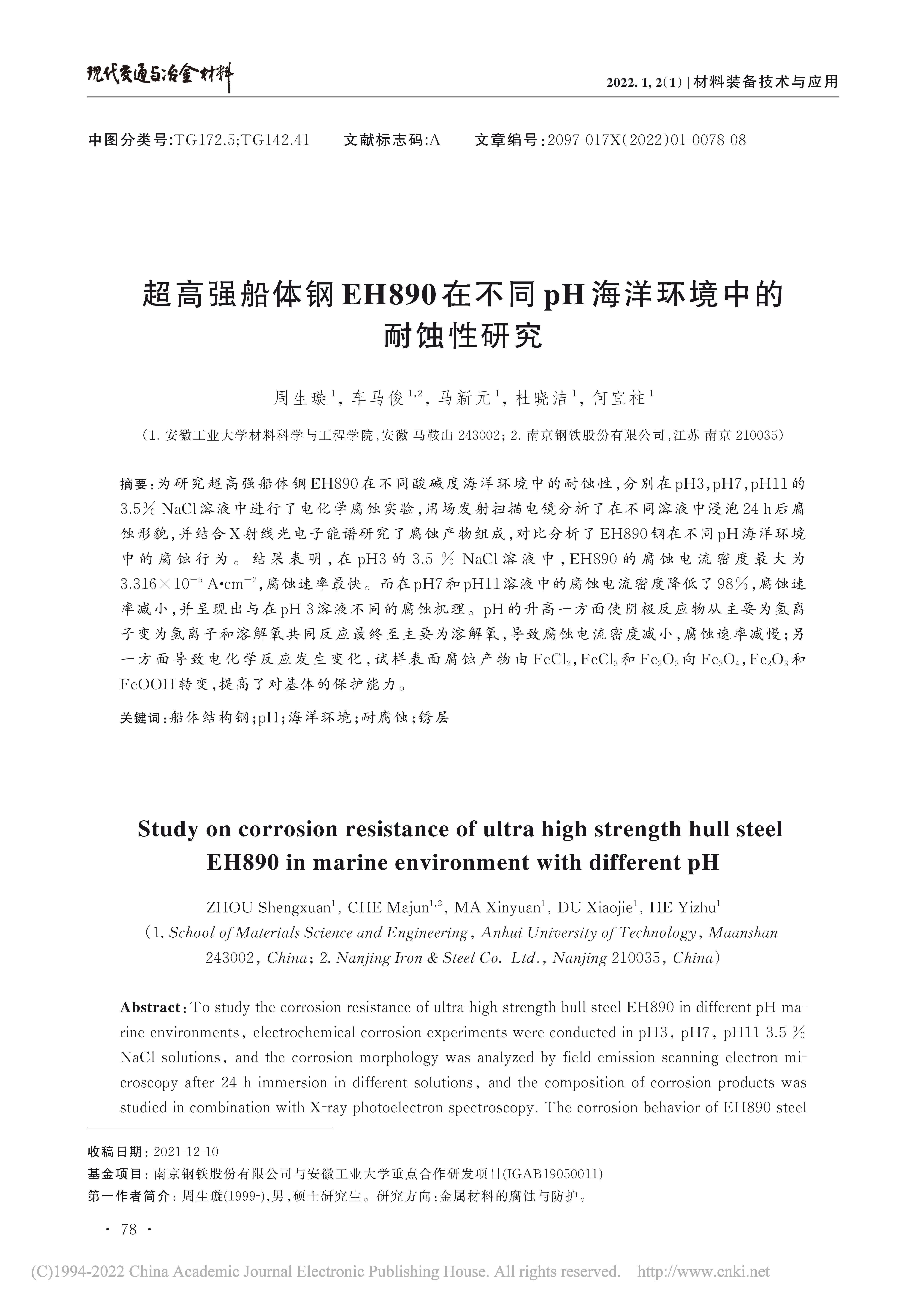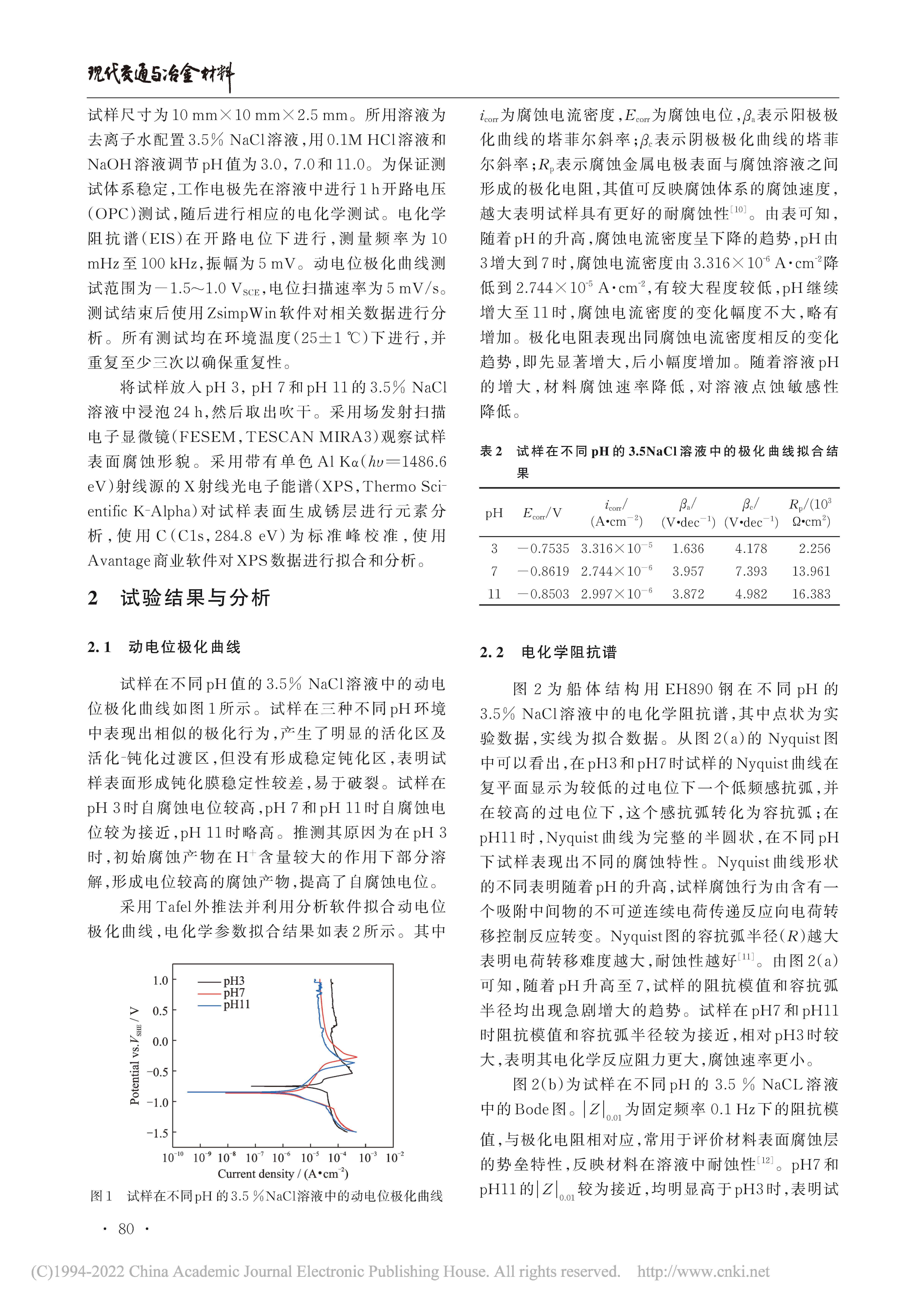 超高强船体钢 EH890 在不同 pH 海洋环境中的 耐蚀性研究