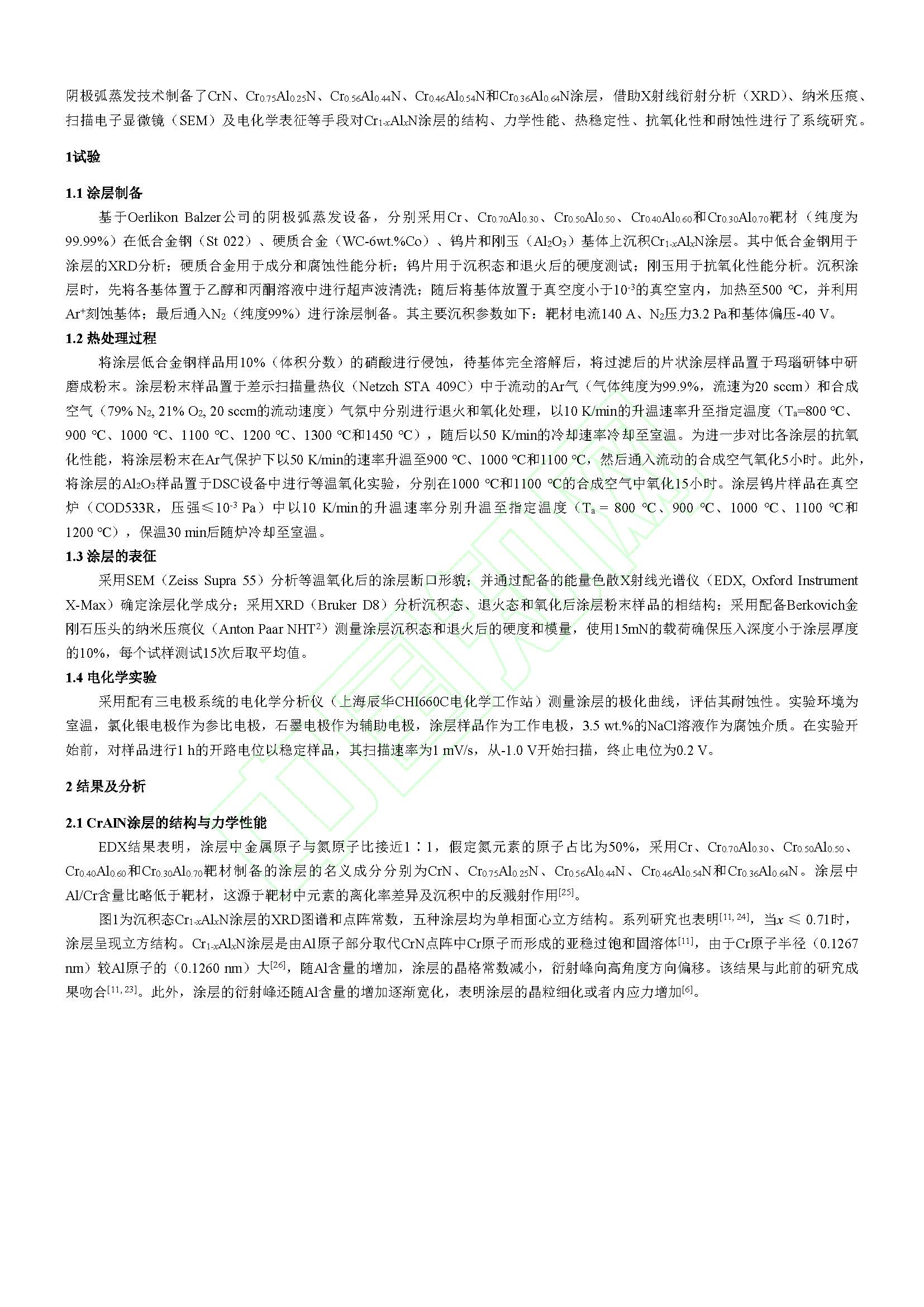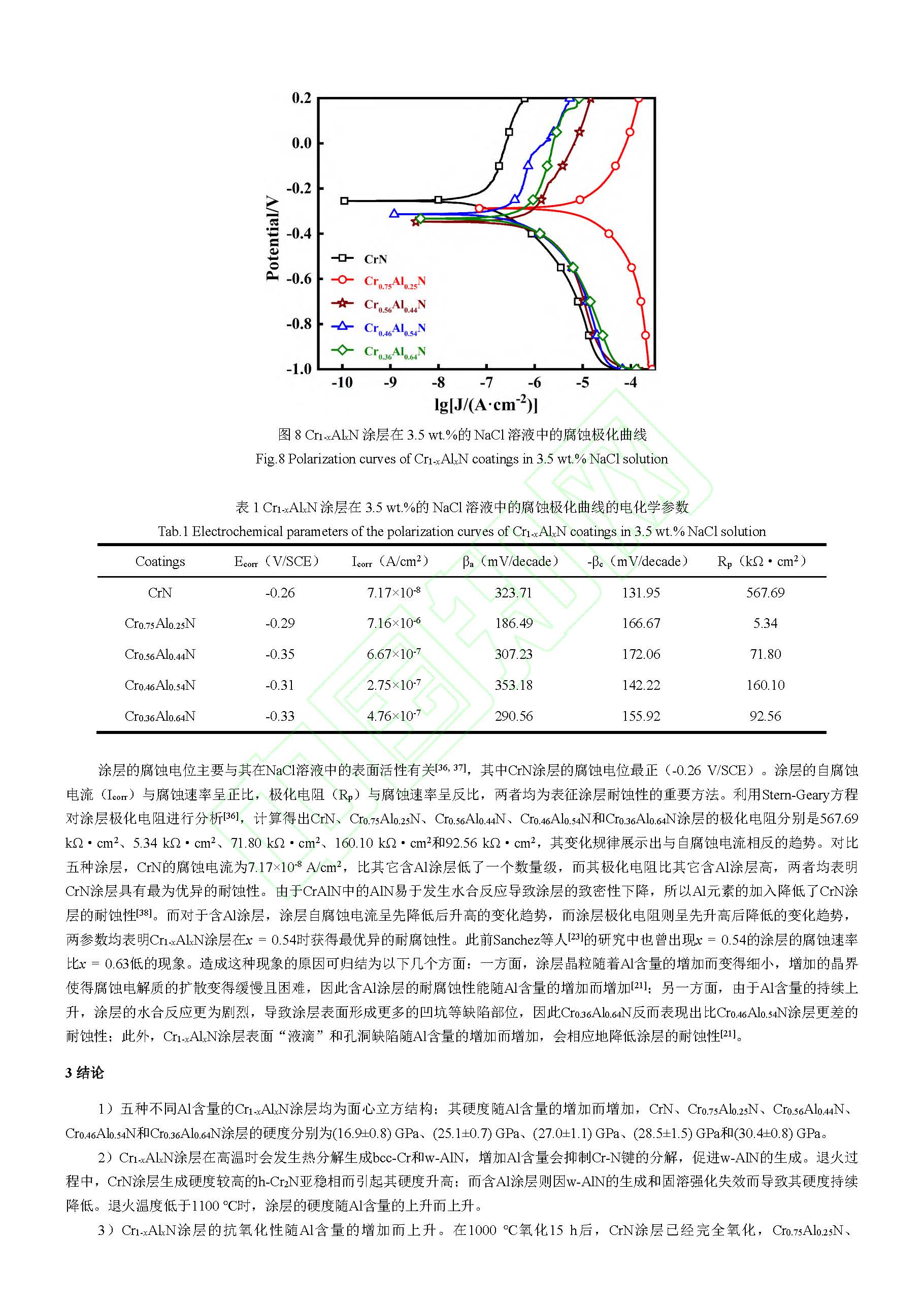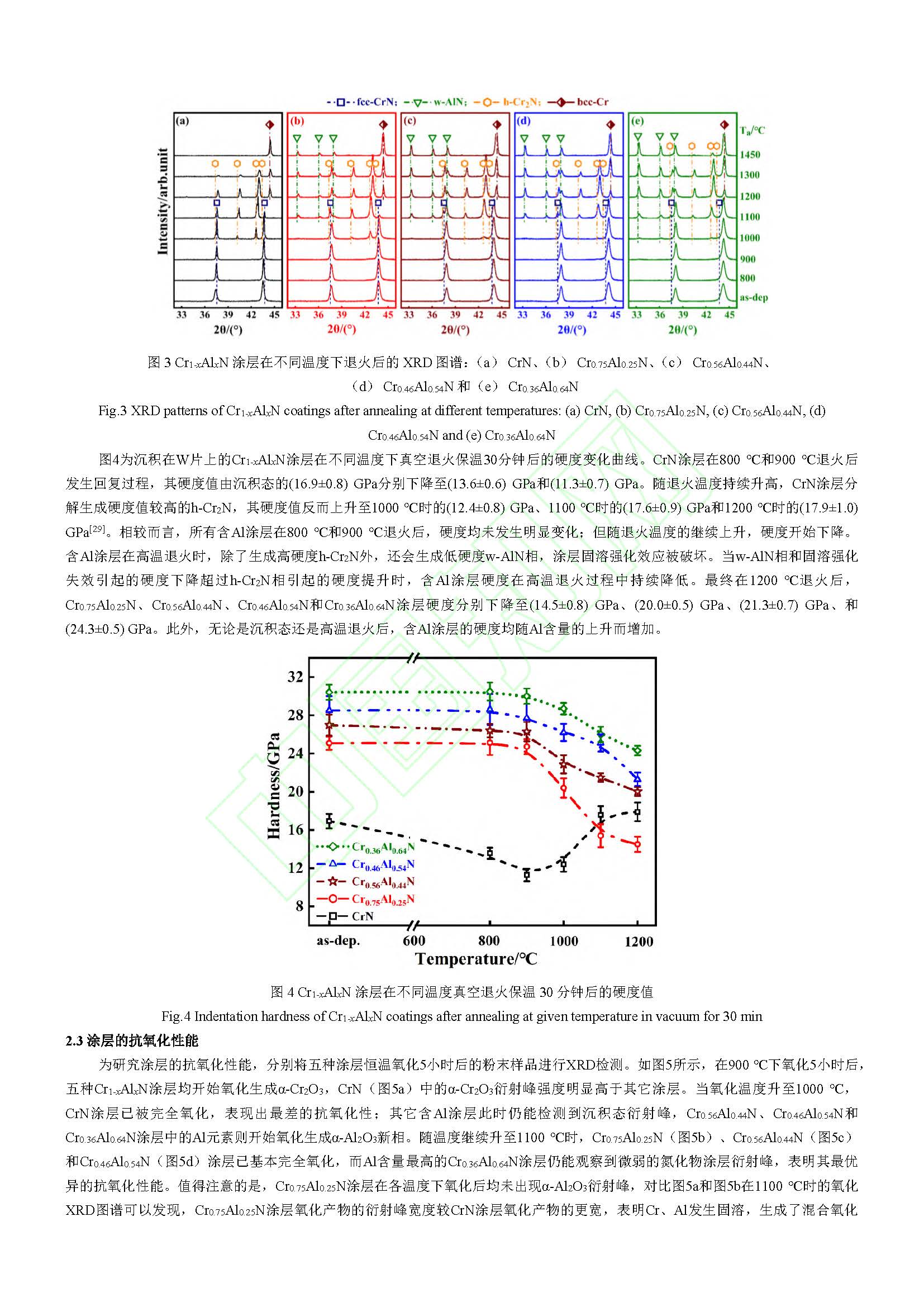 Al含量对Cr1-xAlxN涂层力学、热稳定性、抗氧化性及耐蚀性的影响