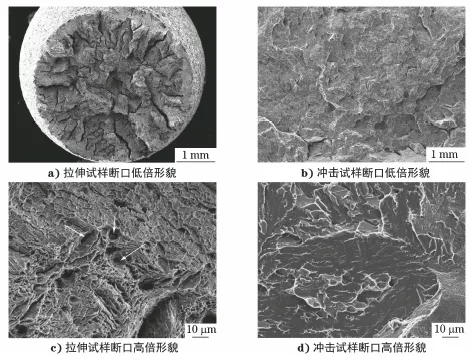 图6 拉伸和冲击试样断口微观形貌