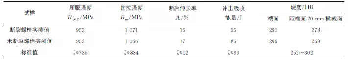 表1 螺栓的力学性能试验结果